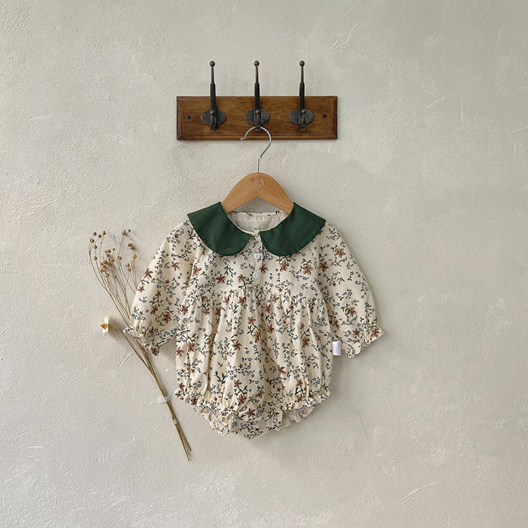 아기 작은 꽃 봄 점프 수트 한국 어린이 의류 아기 소녀의 명암 옷깃 가방 방귀 옷 소녀의 가을 등반 옷스토어 가기