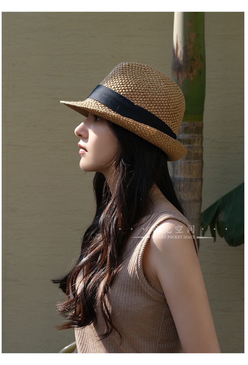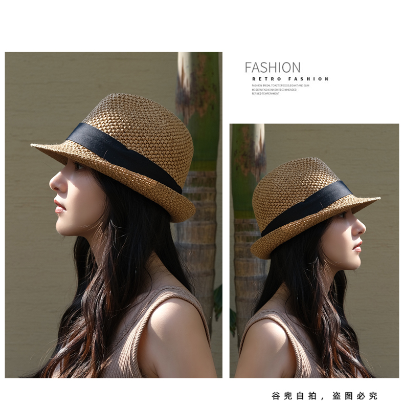 2023 영국 스타일 수제 크로 셰 뜨개질 재즈 모자 휴일 여행 봄과 여름 차양 태양 보호 작은 탑 모자 태양 모자 도매스토어 가기