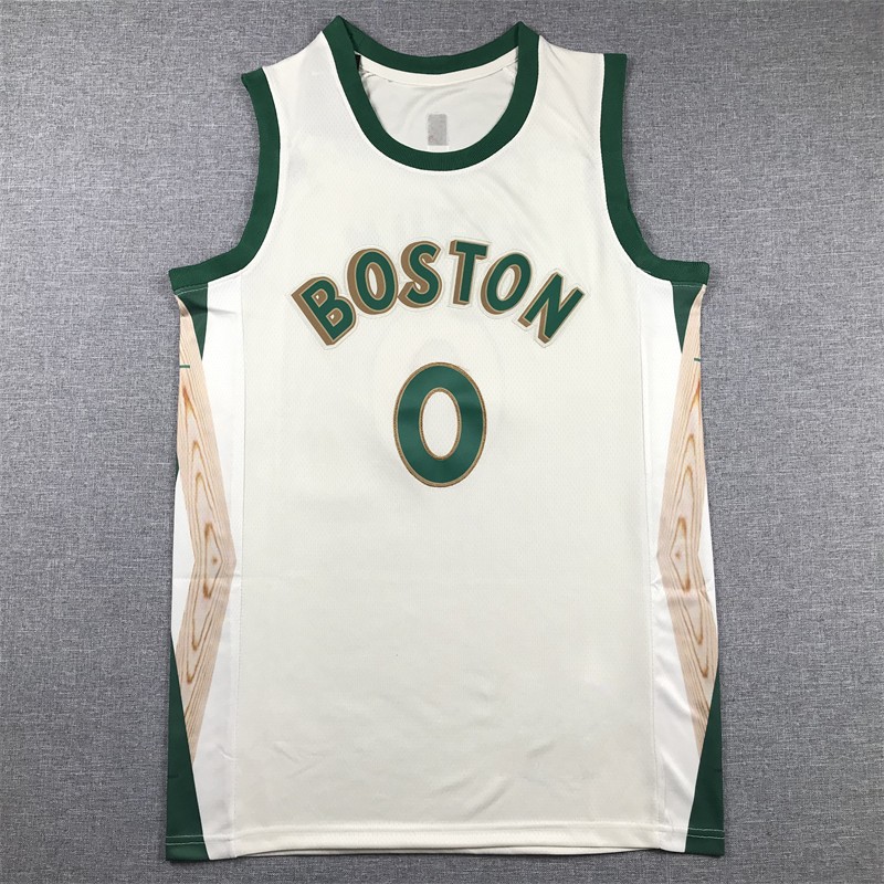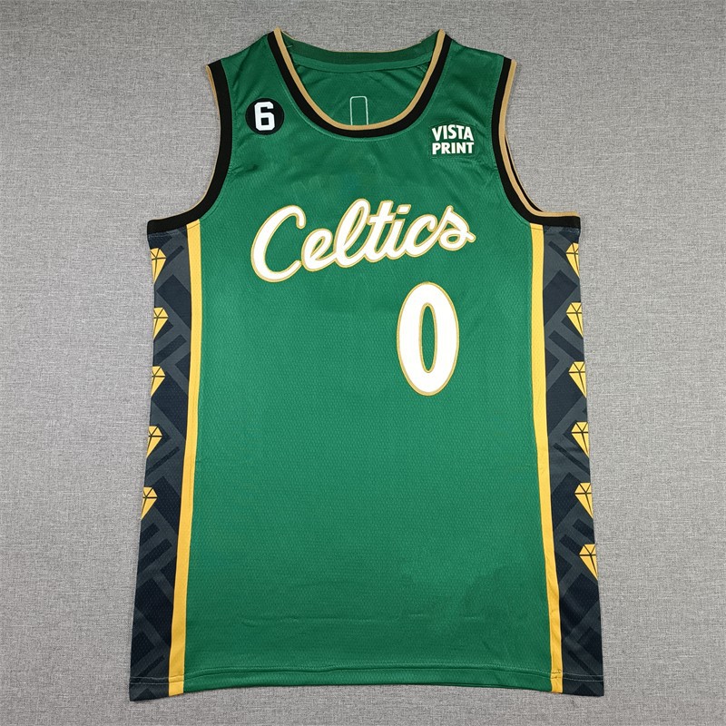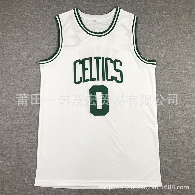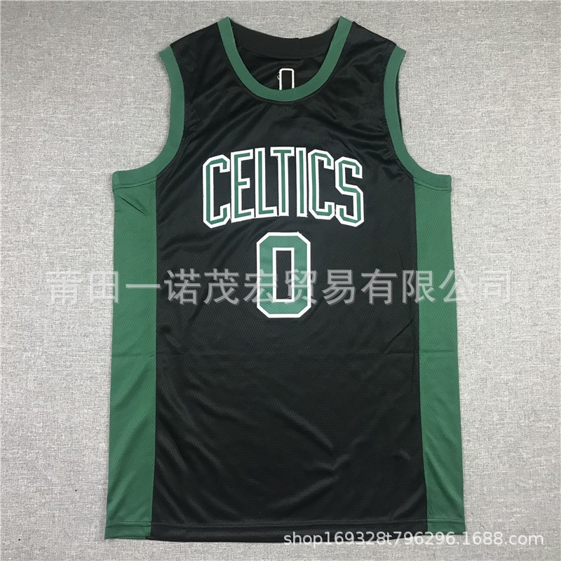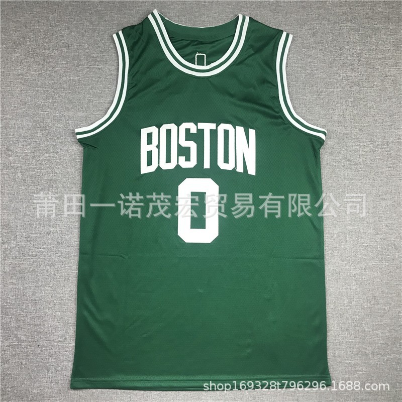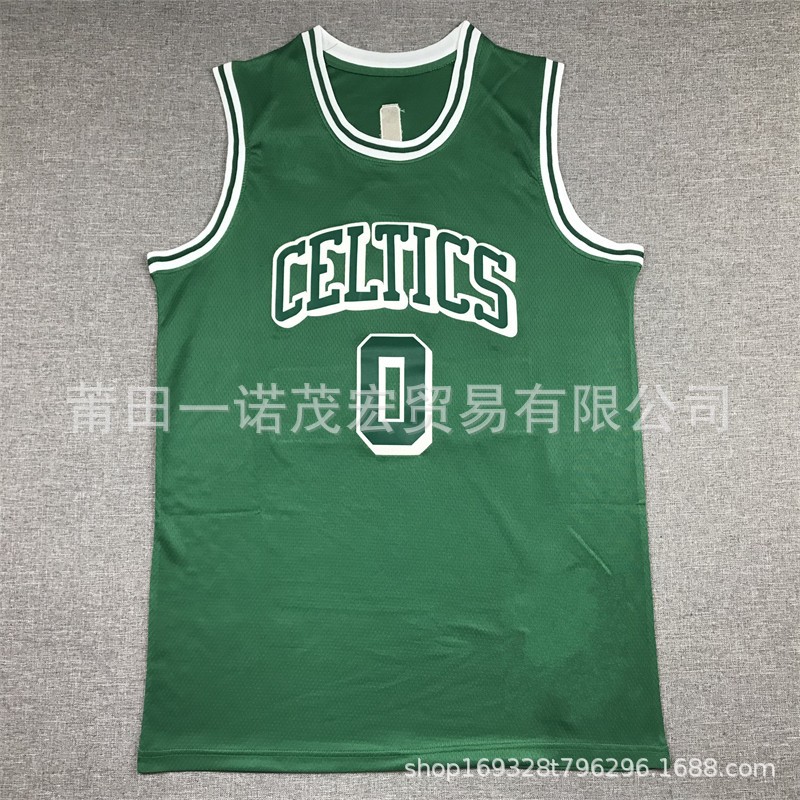 셀틱스 자수 농구 유니폼 저지 조끼 도매 녹색 0 # 테이텀 7 # 4 #