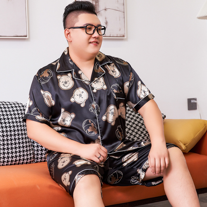 뚱뚱한 남자 특대 300kg 남자 잠옷 아이스 실크 반팔 여름 플러스 뚱뚱한 플러스 사이즈 느슨한 착용 할 수있다 200kg 남자