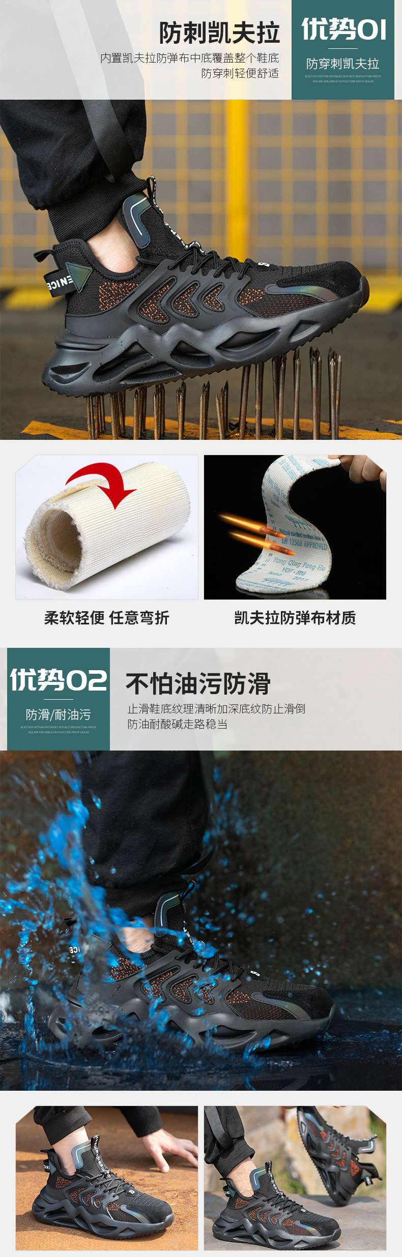 남성용 새로운 노동 보호 신발, 케블라 밑창, 가볍고 통기성, 스매싱 방지 및 펑크 방지 작업 신발, 내마모성 보호 신발