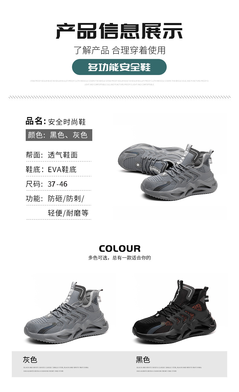 남성용 새로운 노동 보호 신발, 케블라 밑창, 가볍고 통기성, 스매싱 방지 및 펑크 방지 작업 신발, 내마모성 보호 신발스토어 가기
