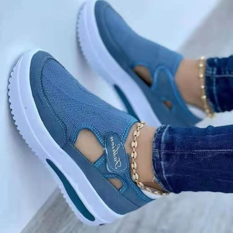 여름 크로스 보더 플러스 사이즈 플라이-짠 통기성 캐주얼 신발 웨지 2022 새로운 두꺼운 밑창 벨크로 로우 탑 여성 신발스토어 가기