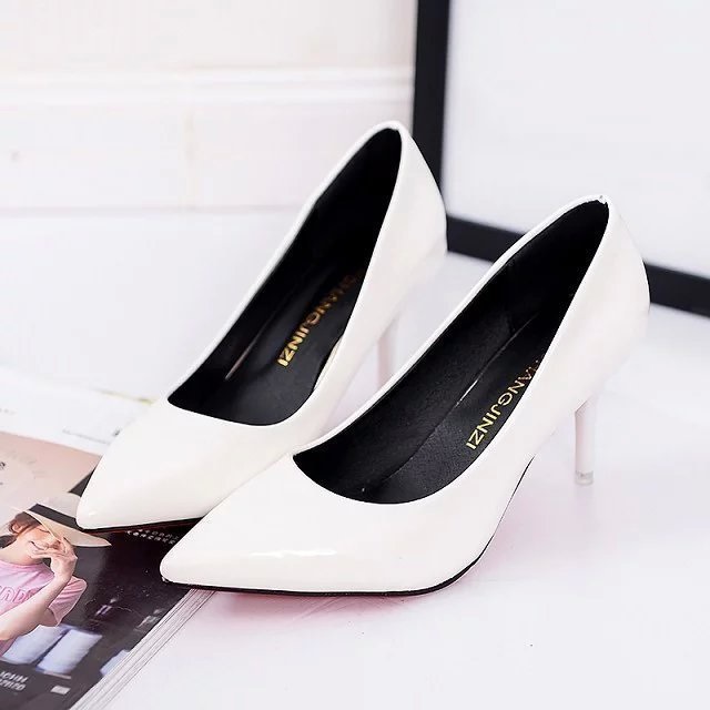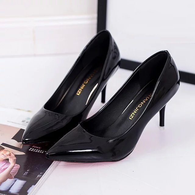 유럽과 미국 멀티 컬러 플러스 사이즈 하이힐 신발 2022 뾰족한 스틸레토 힐 얕은 입 대외 무역 단층 신발 여성용 작업 신발 에나멜 가죽 크기 42스토어 가기