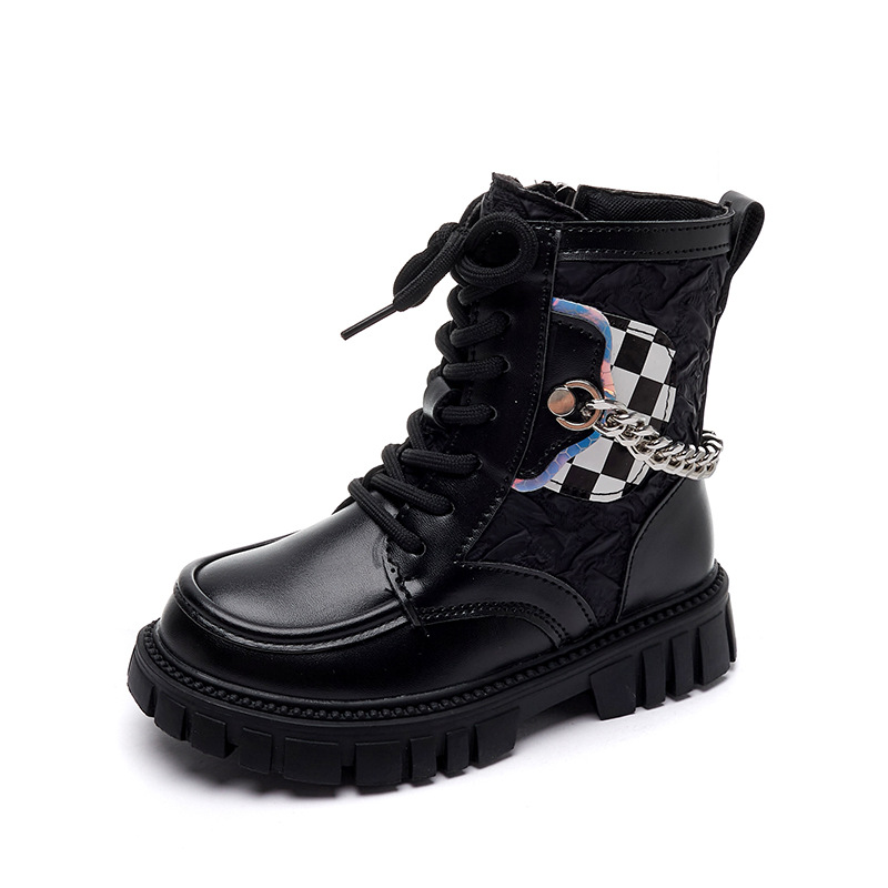 여자 마틴 부츠 2025 가을, 겨울 새 부츠 학교 가방 체인 가죽 부츠 어린이 한국 스타일 짧은 부츠스토어 가기