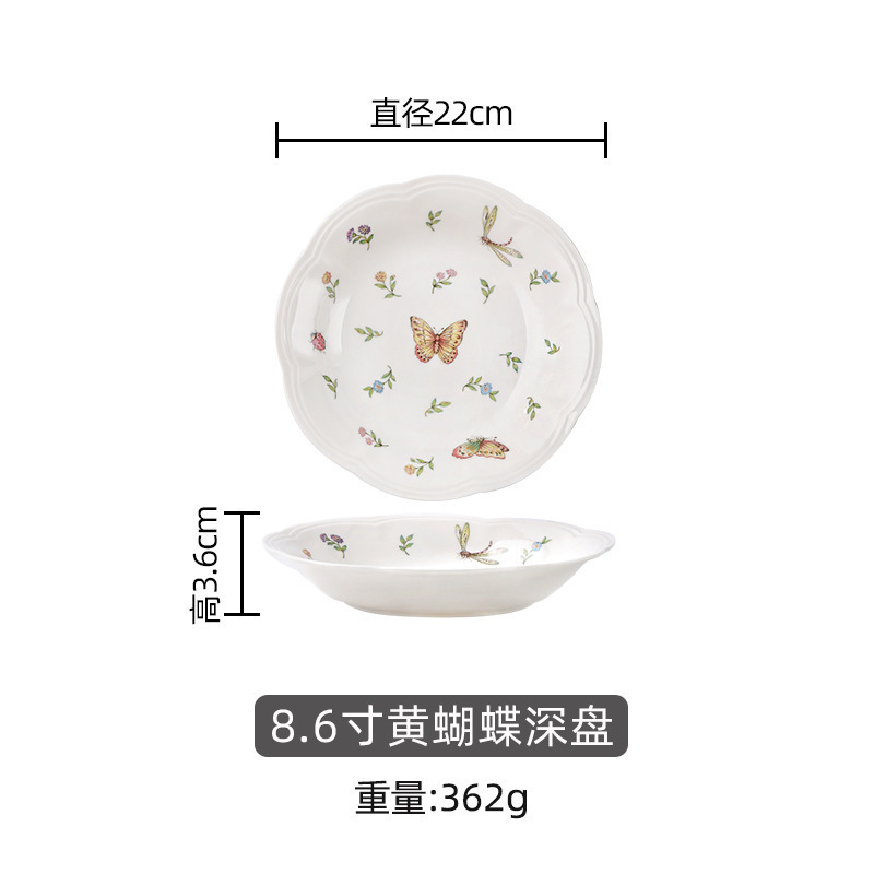 빈티지 창조적 인 잠자리 나비 세라믹 식기 세트 개인화 된 요리 서양 음식 접시 가정용 깊은 물고기 국수 그릇