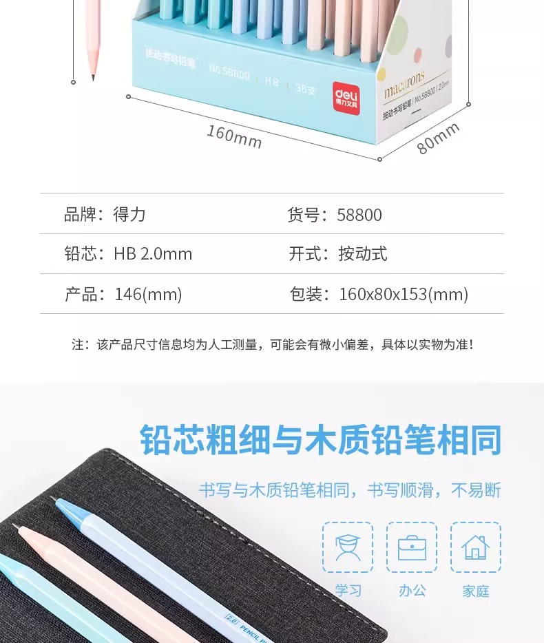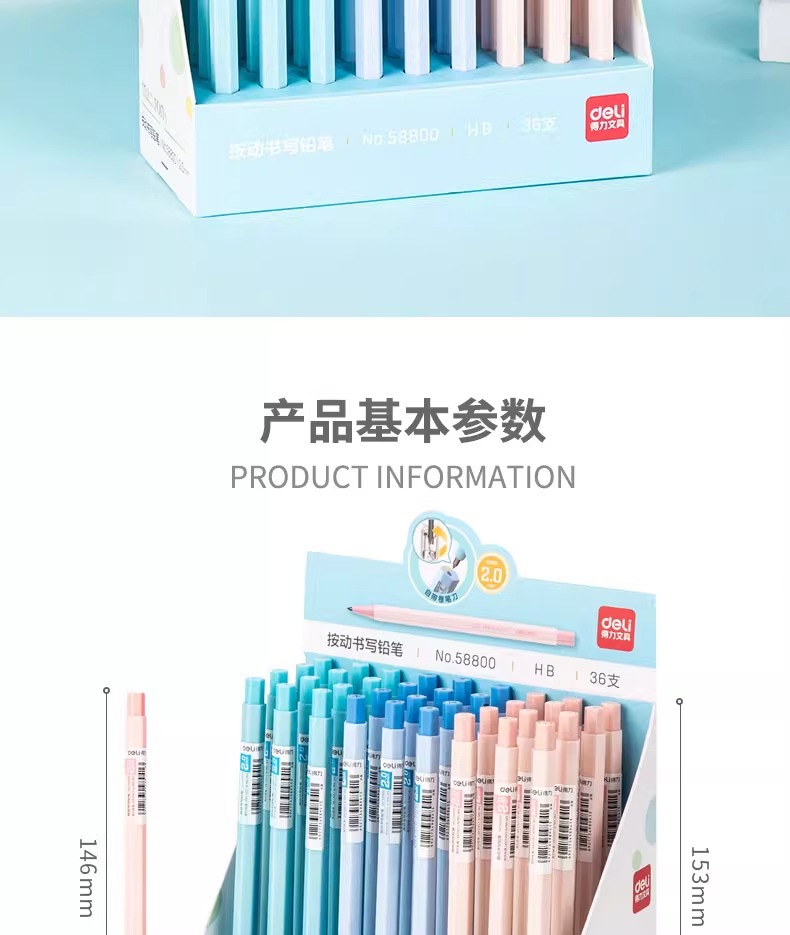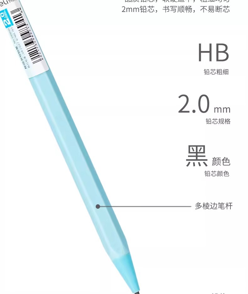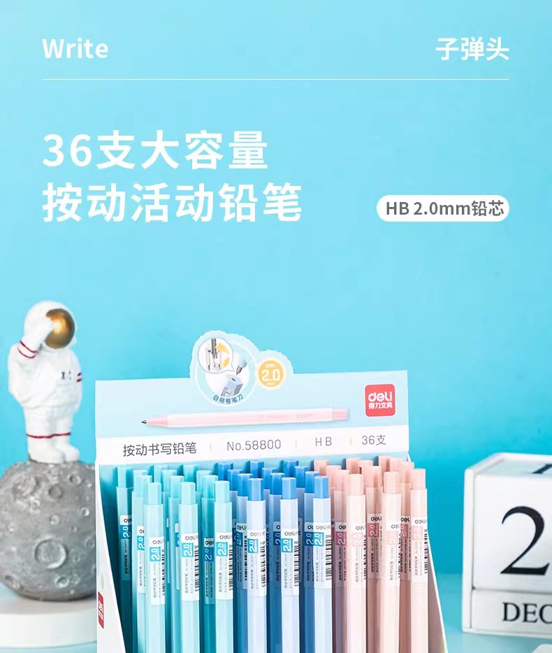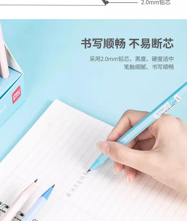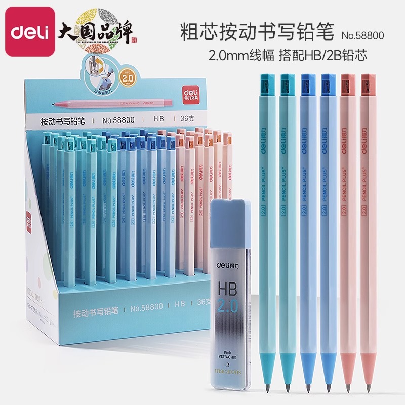 델리 58800 자동 연필 2.0 연속 코어 초등학교 아동 두꺼운 코어 2b 두꺼운 머리 hb 시험 문구 도매스토어 가기