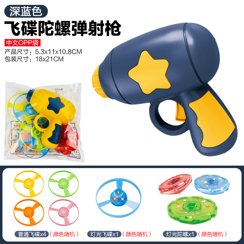 手枪:10.8x5.3x11 普通飞碟:7.5x7.5x0.8 灯光陀螺:6.5x6.5x3 灯光飞碟:7.5x7.5x0.8 |