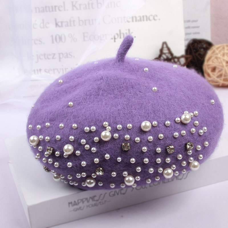 • 니트 진주 베레모-보라색 성인