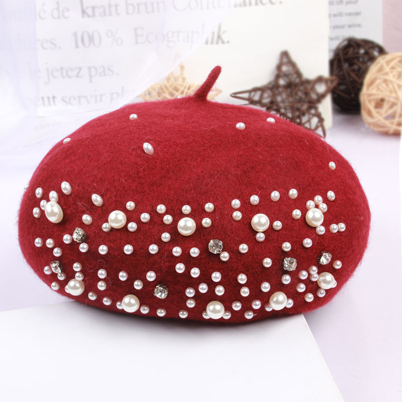 • 니트 진주 베레모-버건디
