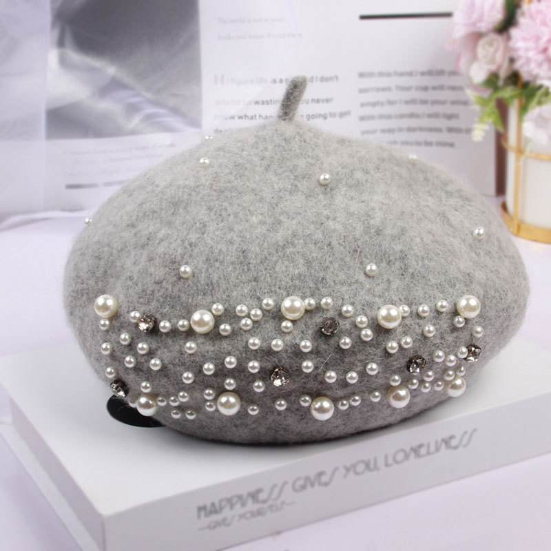• 니트 진주 베레모-대마 그레이