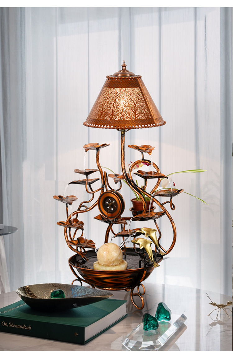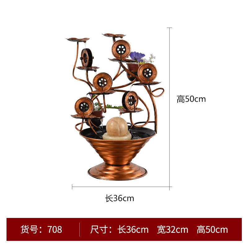 바람과 물 순수한 구리 분수 장식품 거실 물고기 탱크 물 발코니 사무실 인테리어 장식품 풍수 바퀴 풍수