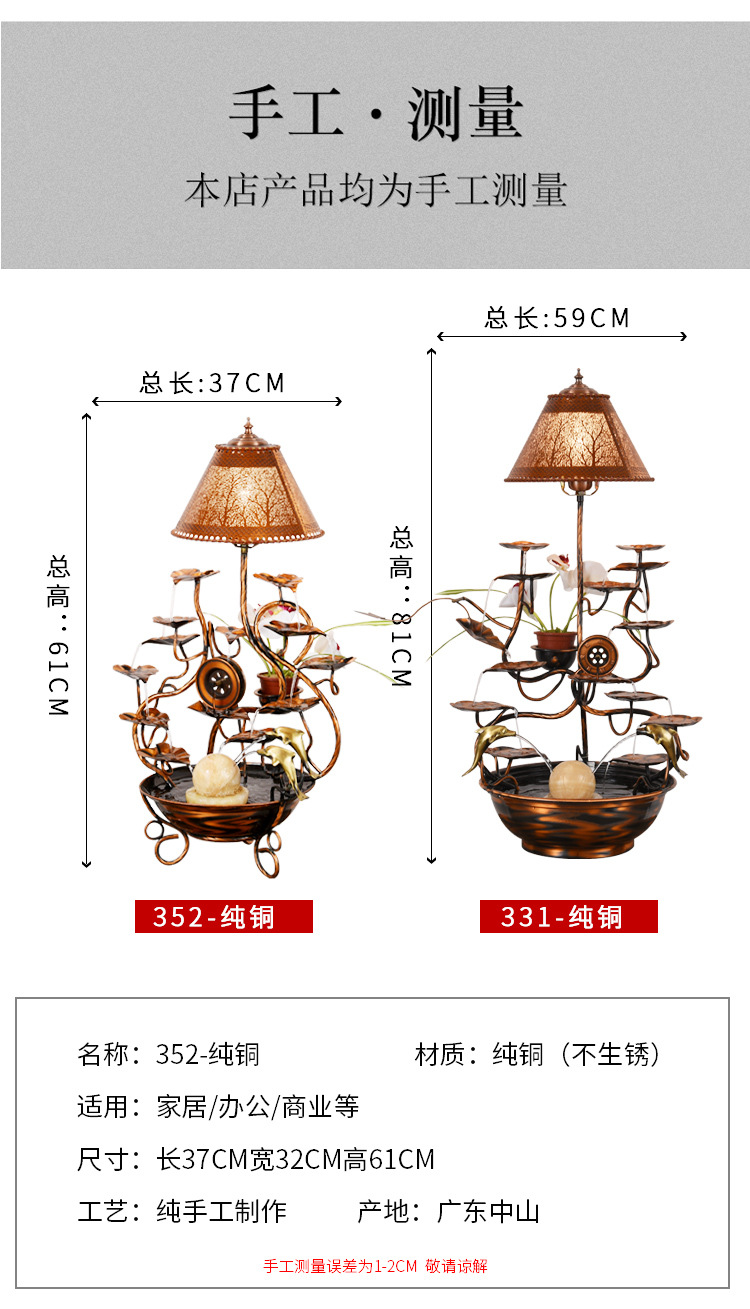 바람과 물 순수한 구리 분수 장식품 거실 물고기 탱크 물 발코니 사무실 인테리어 장식품 풍수 바퀴 풍수스토어 가기