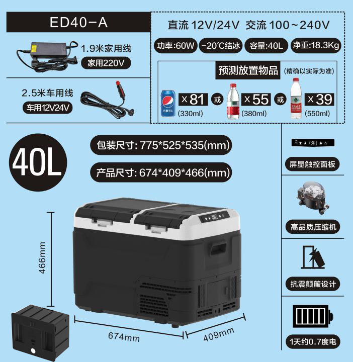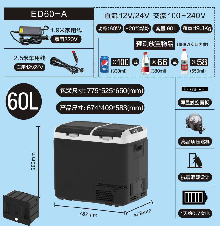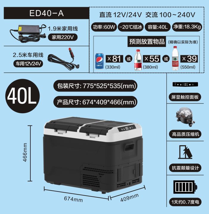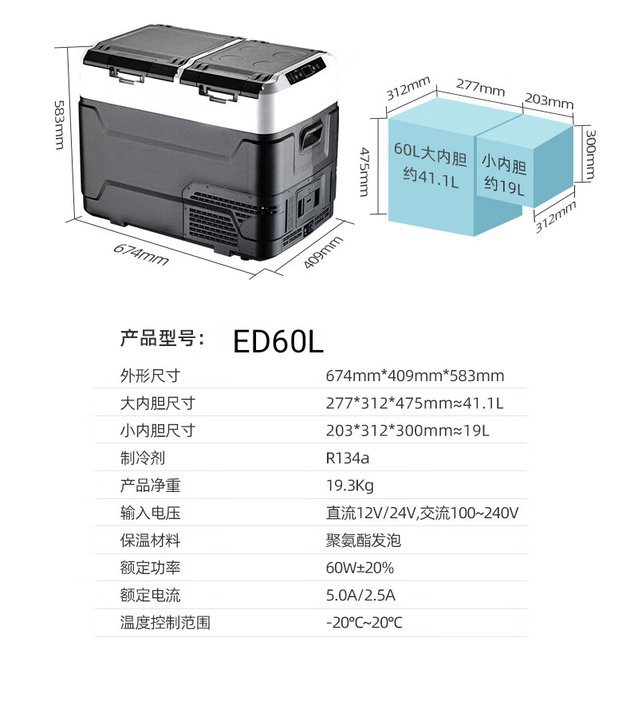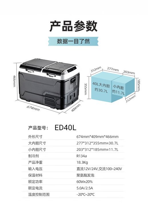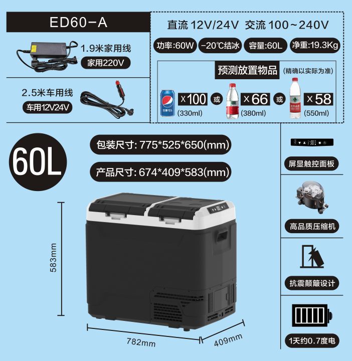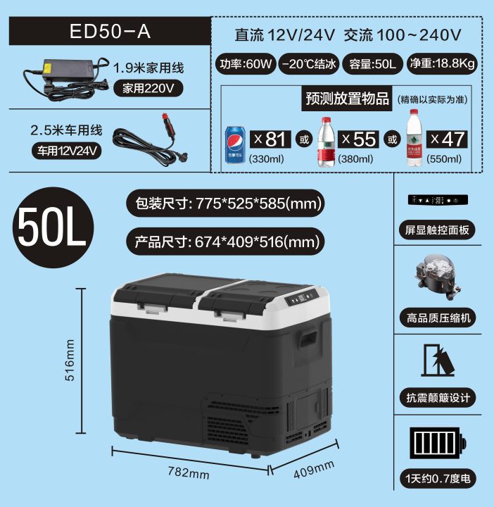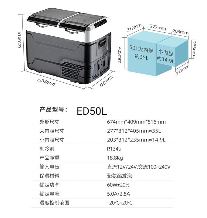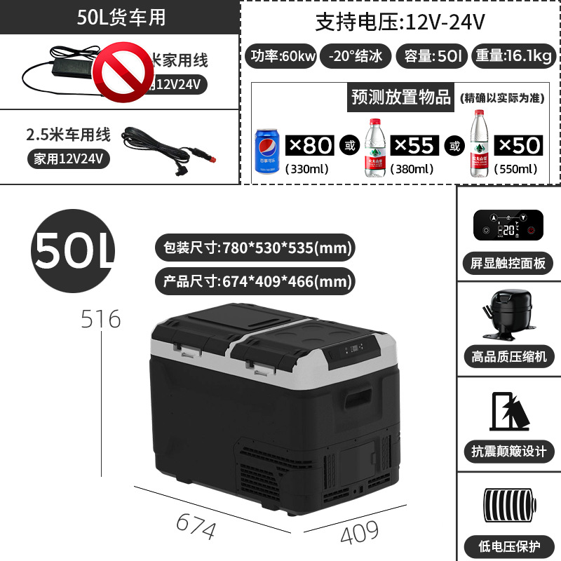 Ojing 압축기 자동차 냉장고 50L 자동차 홈 이중 목적 냉동 및 냉장 캠핑 야외 대용량 이중 온도 이중 제어