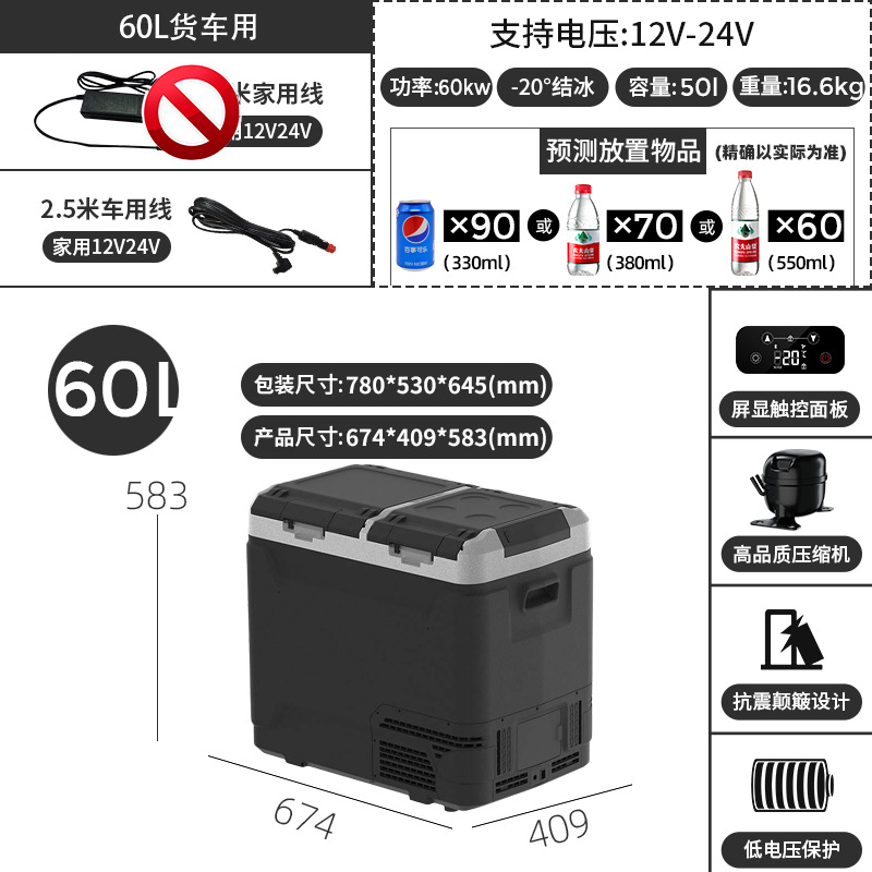 Ojing 압축기 자동차 냉장고 50L 자동차 홈 이중 목적 냉동 및 냉장 캠핑 야외 대용량 이중 온도 이중 제어스토어 가기