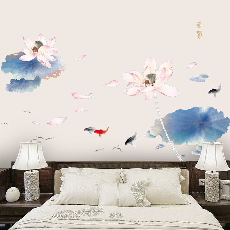 GS9506 잉크 연꽃 벽 스티커 아늑한 방 침대 옆 침실 거실 벽 장식 벽 스티커 종이