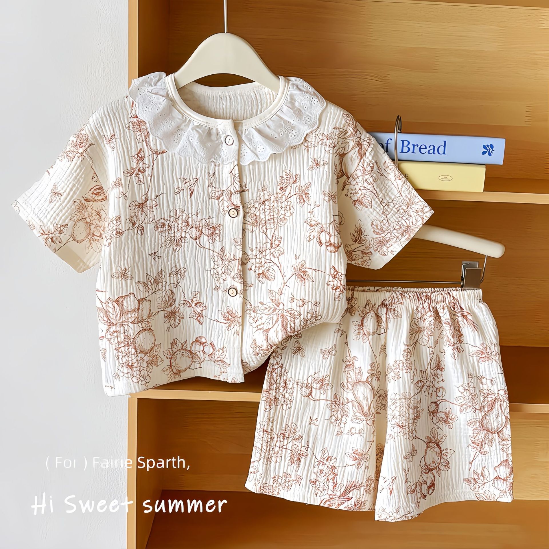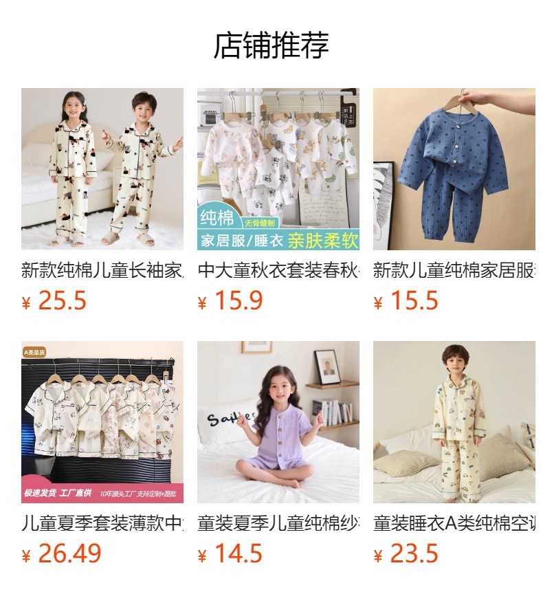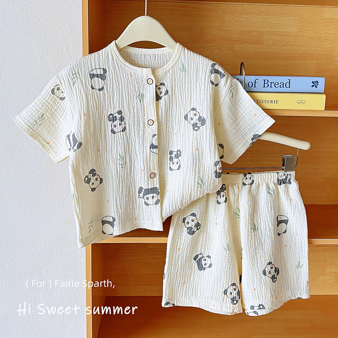 여름용 A급 순면 아동 홈웨어 세트 반팔 얇은 아기 에어컨 잠옷 100% 면 귀여운 스타일스토어 가기