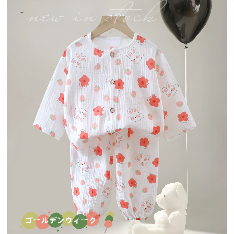 여름용 A급 순면 아동 홈웨어 세트 반팔 얇은 아기 에어컨 잠옷 100% 면 귀여운 스타일