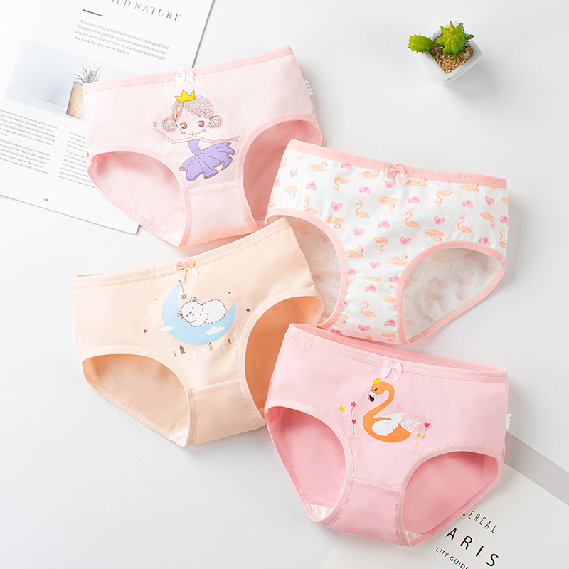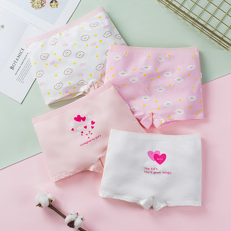 4 팩 소녀 속옷 클래스 어린이 속옷 도매 5A 더블 항균 만화 면 반바지 클립 없음 pp스토어 가기