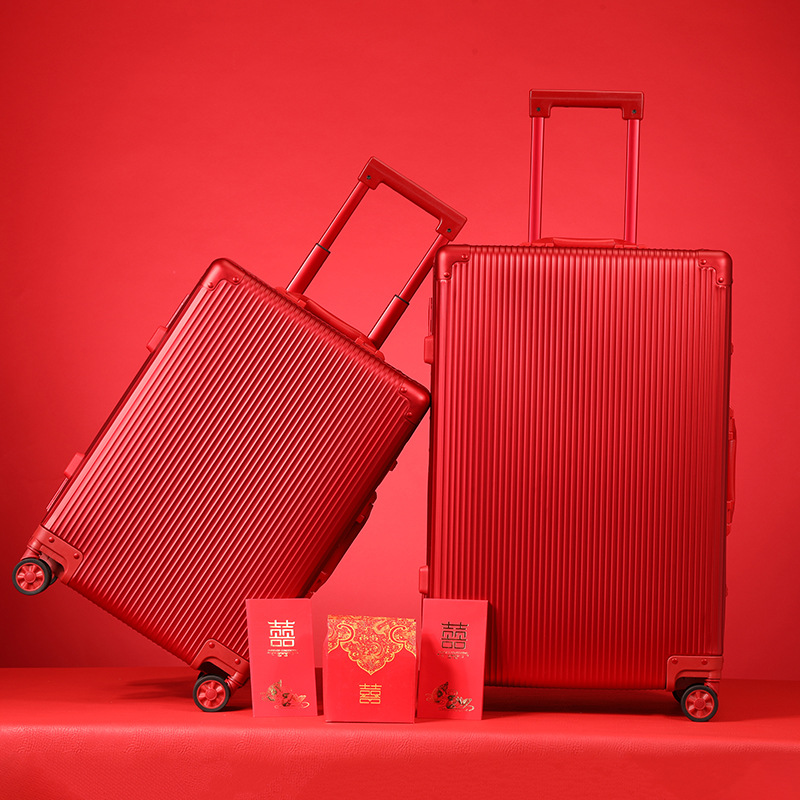웨딩 수하물 에스코트 상자 20 여성 모든 알루미늄 금속 상자 암호 신부 지참금 상자 24 인치 빨간색 트롤리 케이스