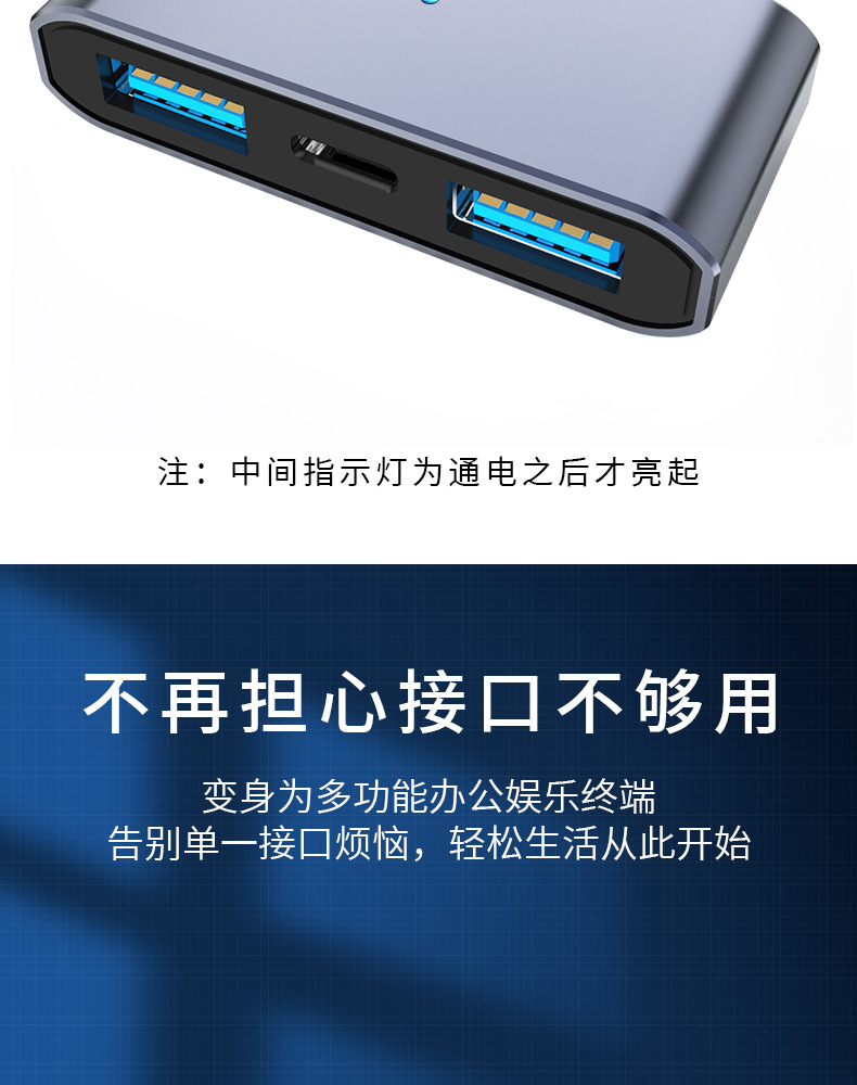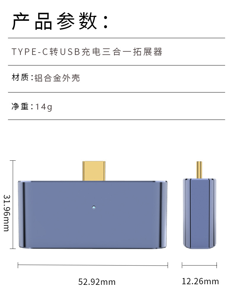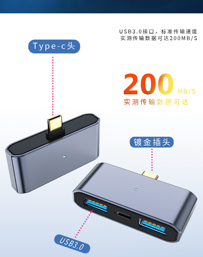 가벼운 허브 컴퓨터 휴대 전화 익스텐더와 함께 3 대 1 otg 어댑터를 충전하는 공장 직접 타입-c스토어 가기