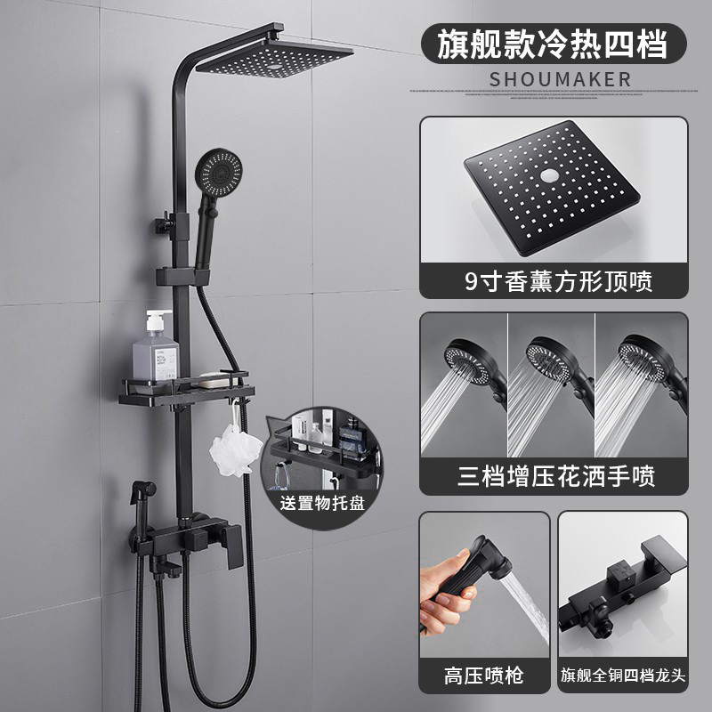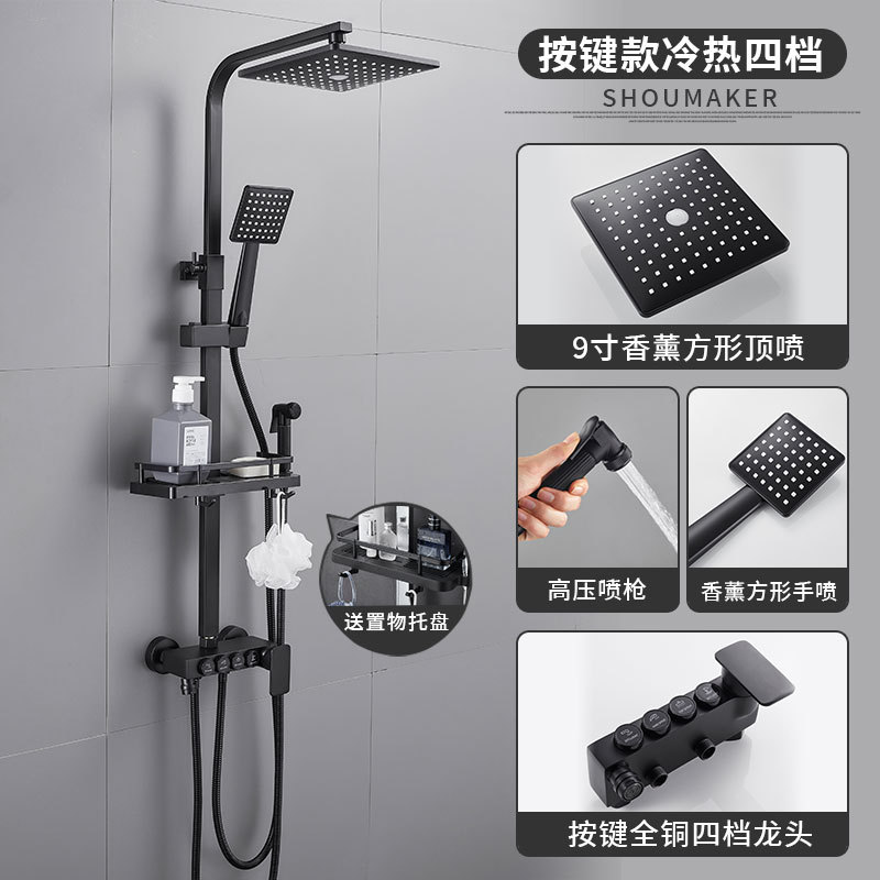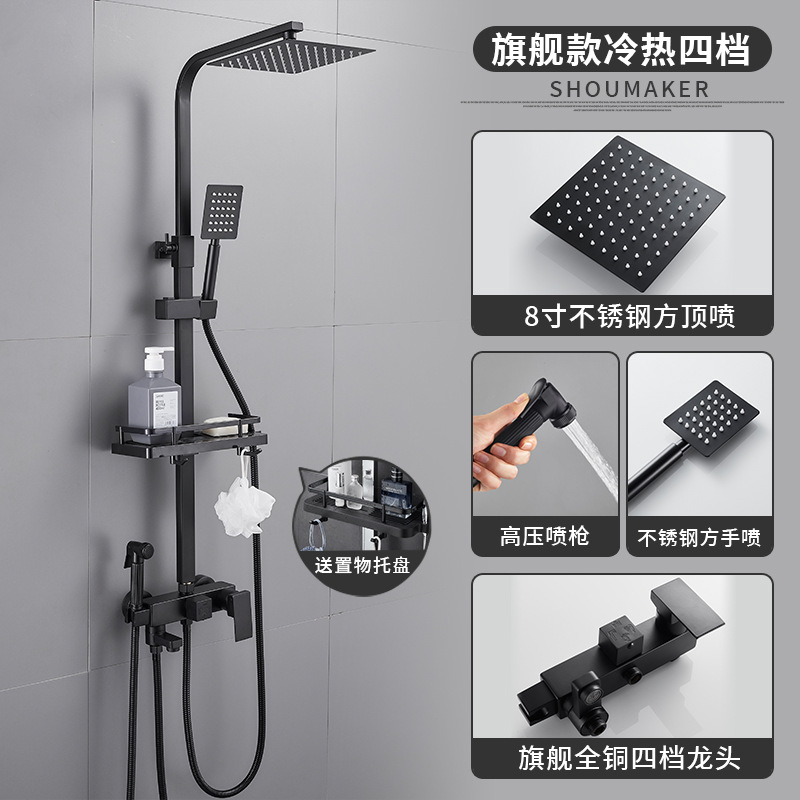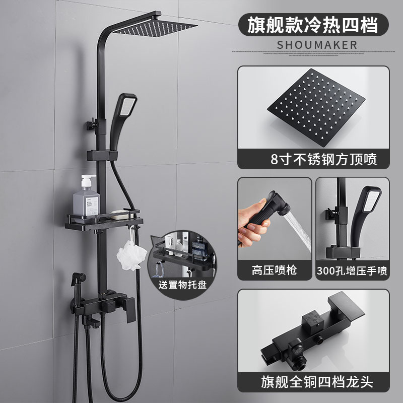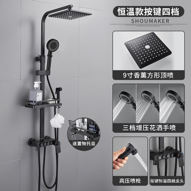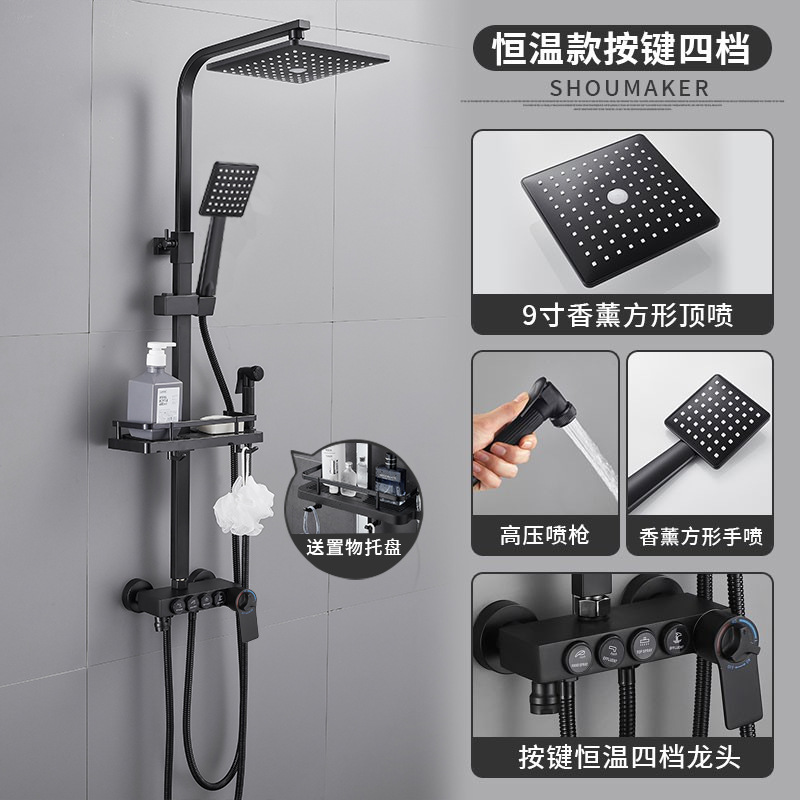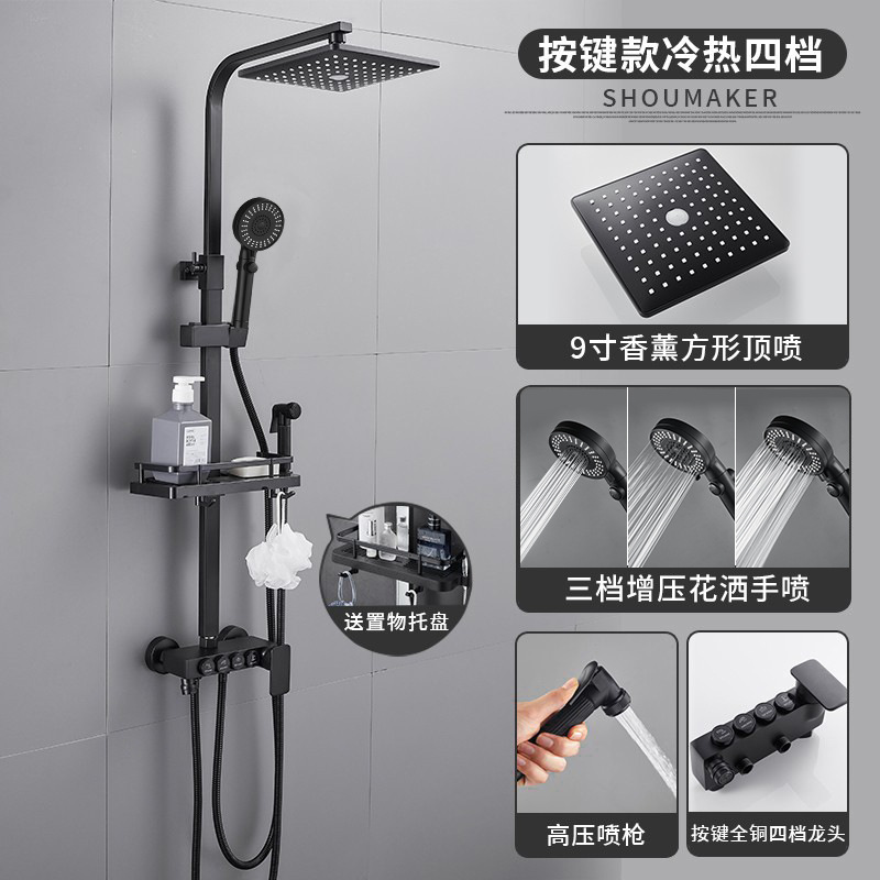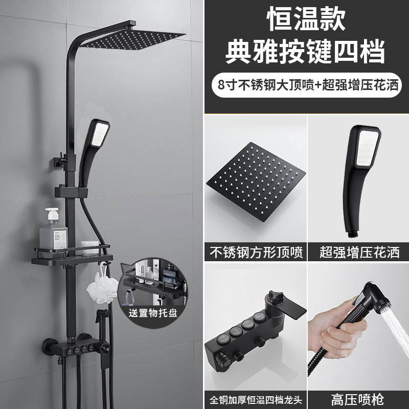 블랙 샤워 세트 가정용 욕실 모든 구리 욕실 가압 샤워 게이지 온도 조절 수도꼭지 비 스프레이 헤드
