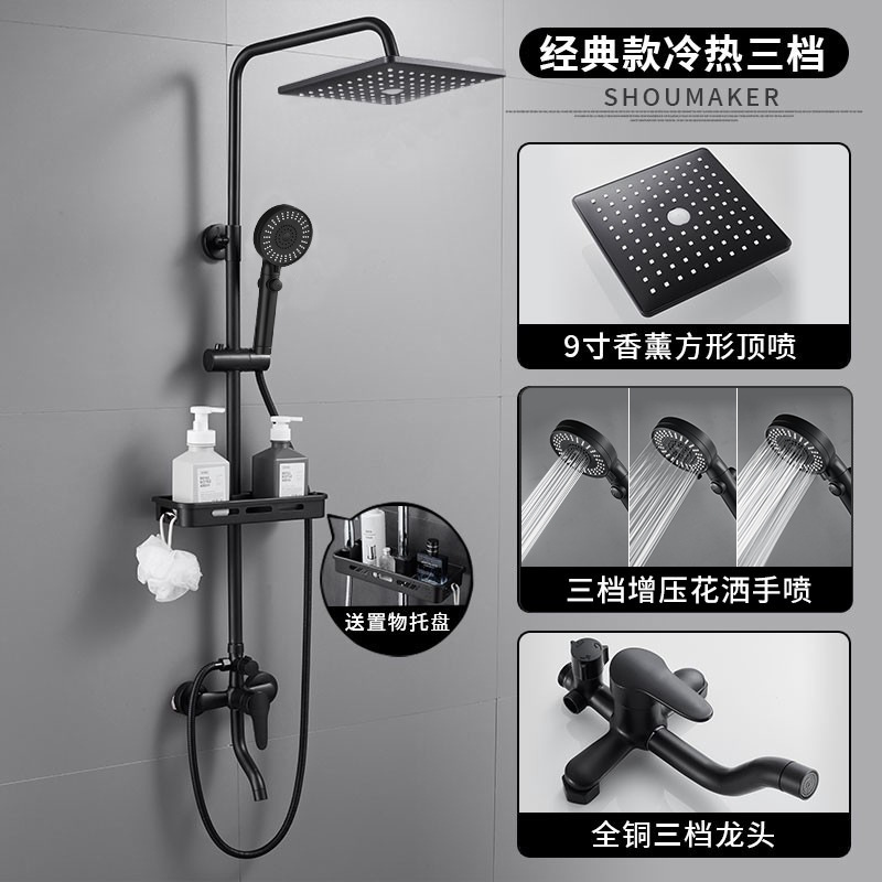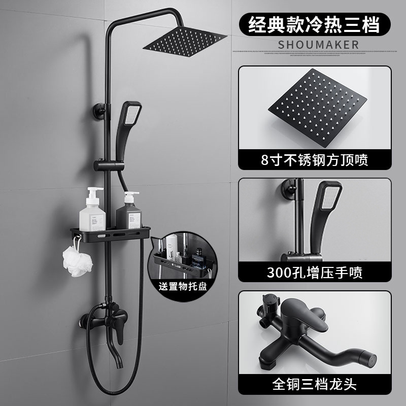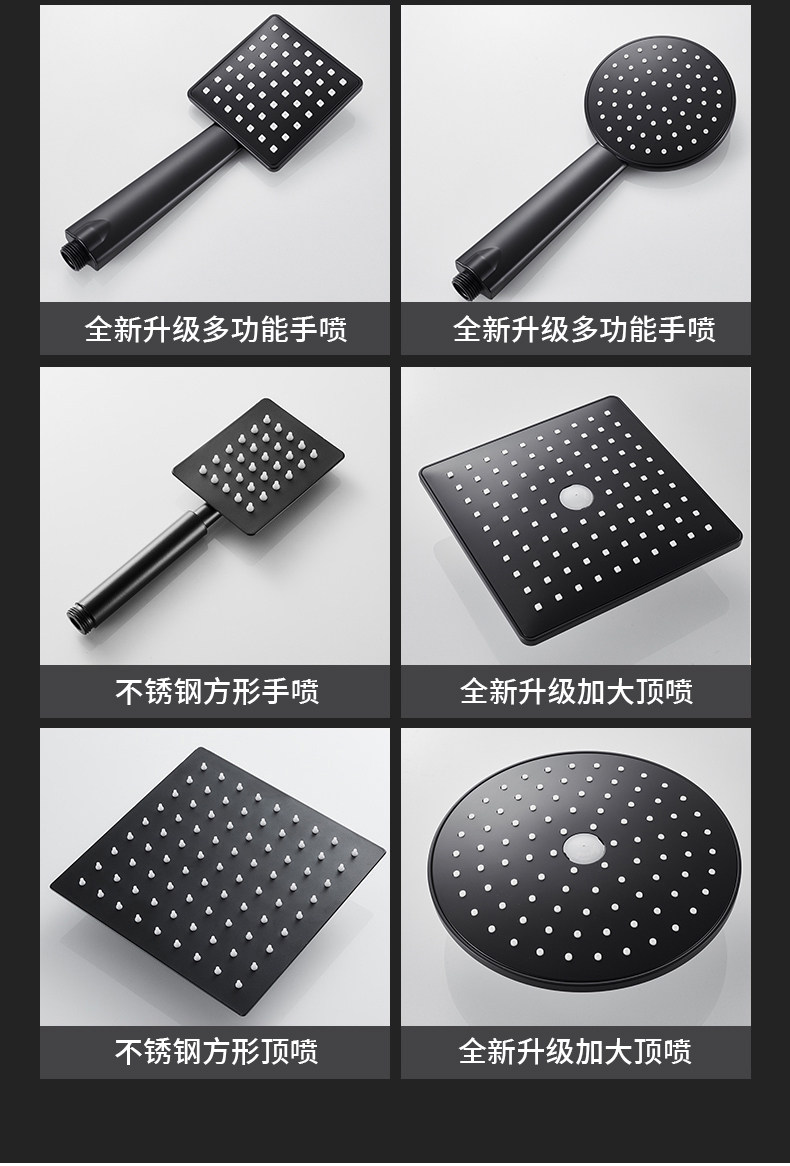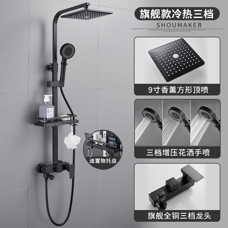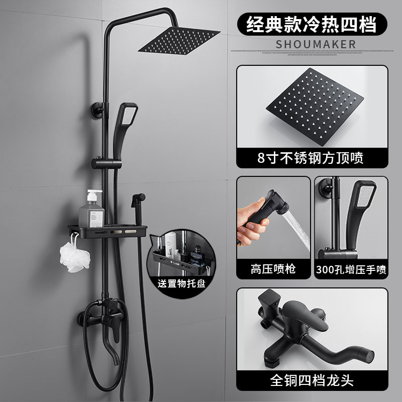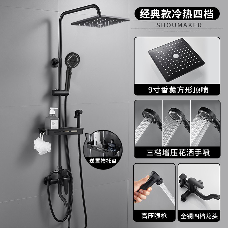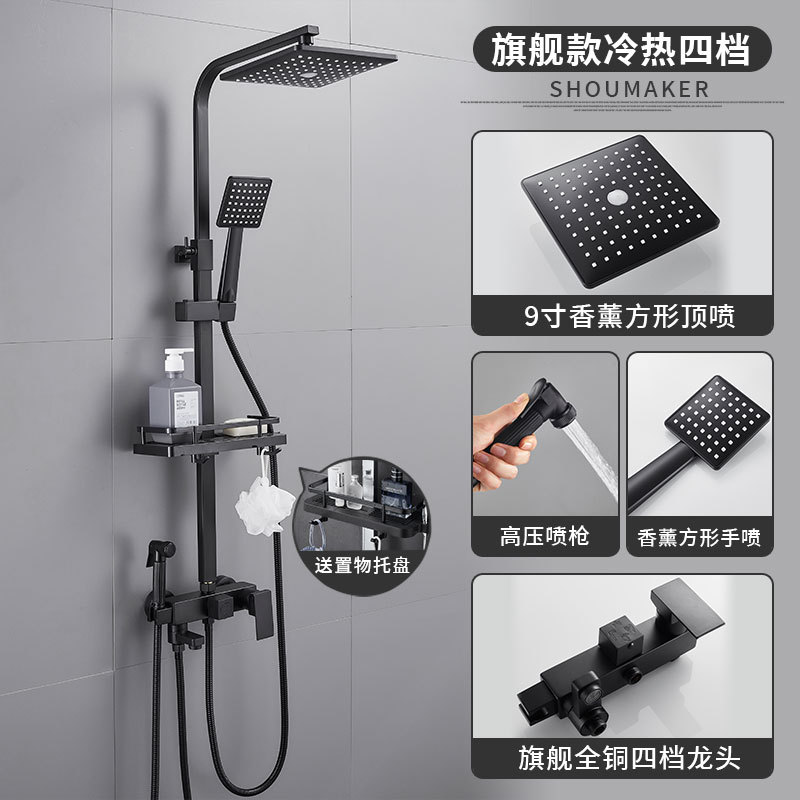 블랙 샤워 세트 가정용 욕실 모든 구리 욕실 가압 샤워 게이지 온도 조절 수도꼭지 비 스프레이 헤드