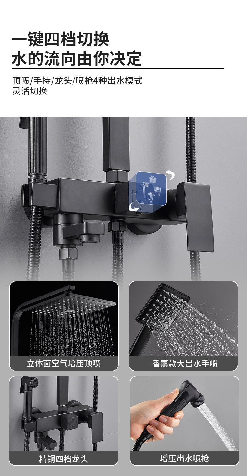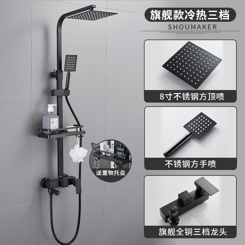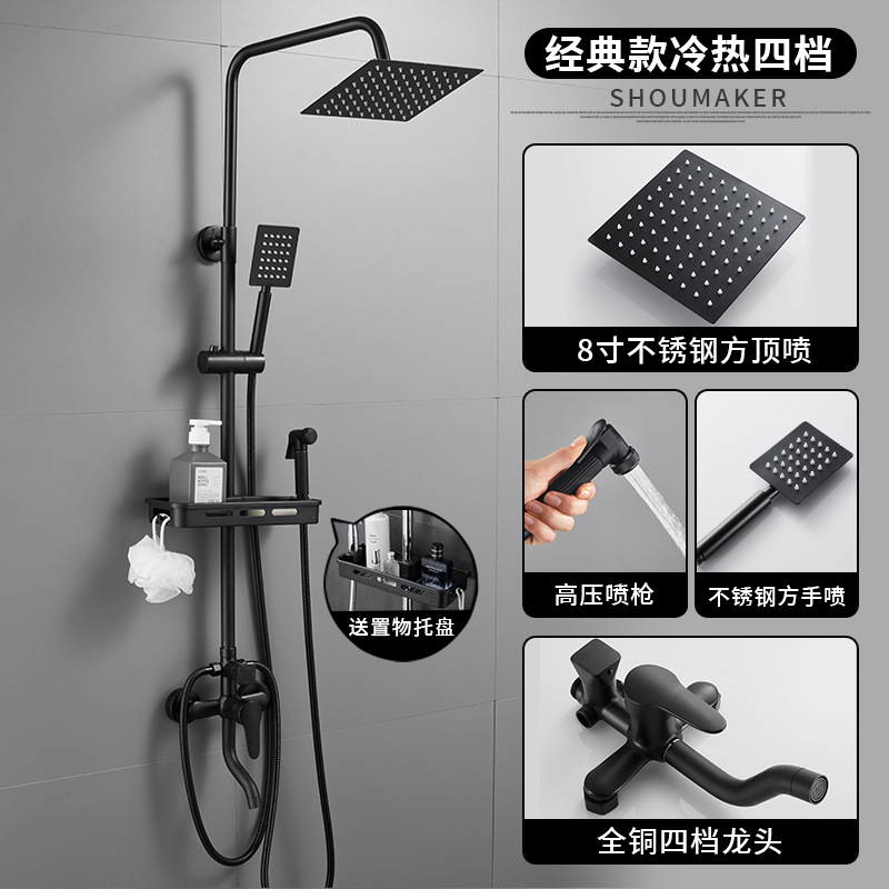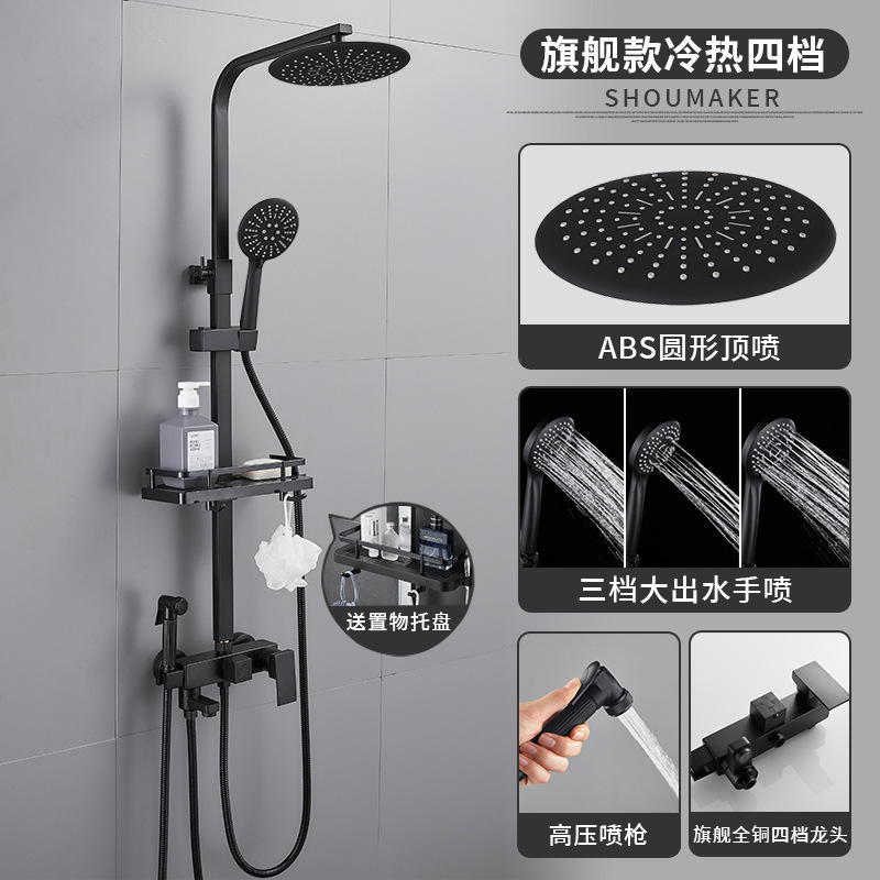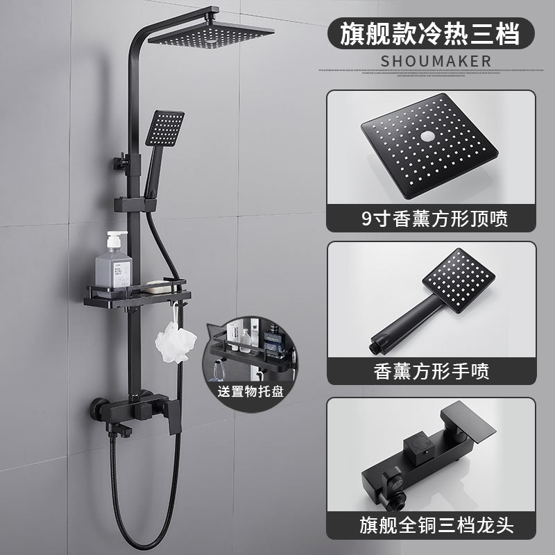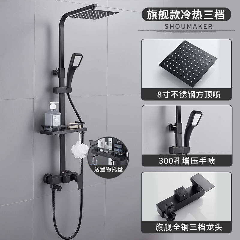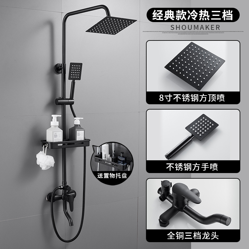 블랙 샤워 세트 가정용 욕실 모든 구리 욕실 가압 샤워 게이지 온도 조절 수도꼭지 비 스프레이 헤드