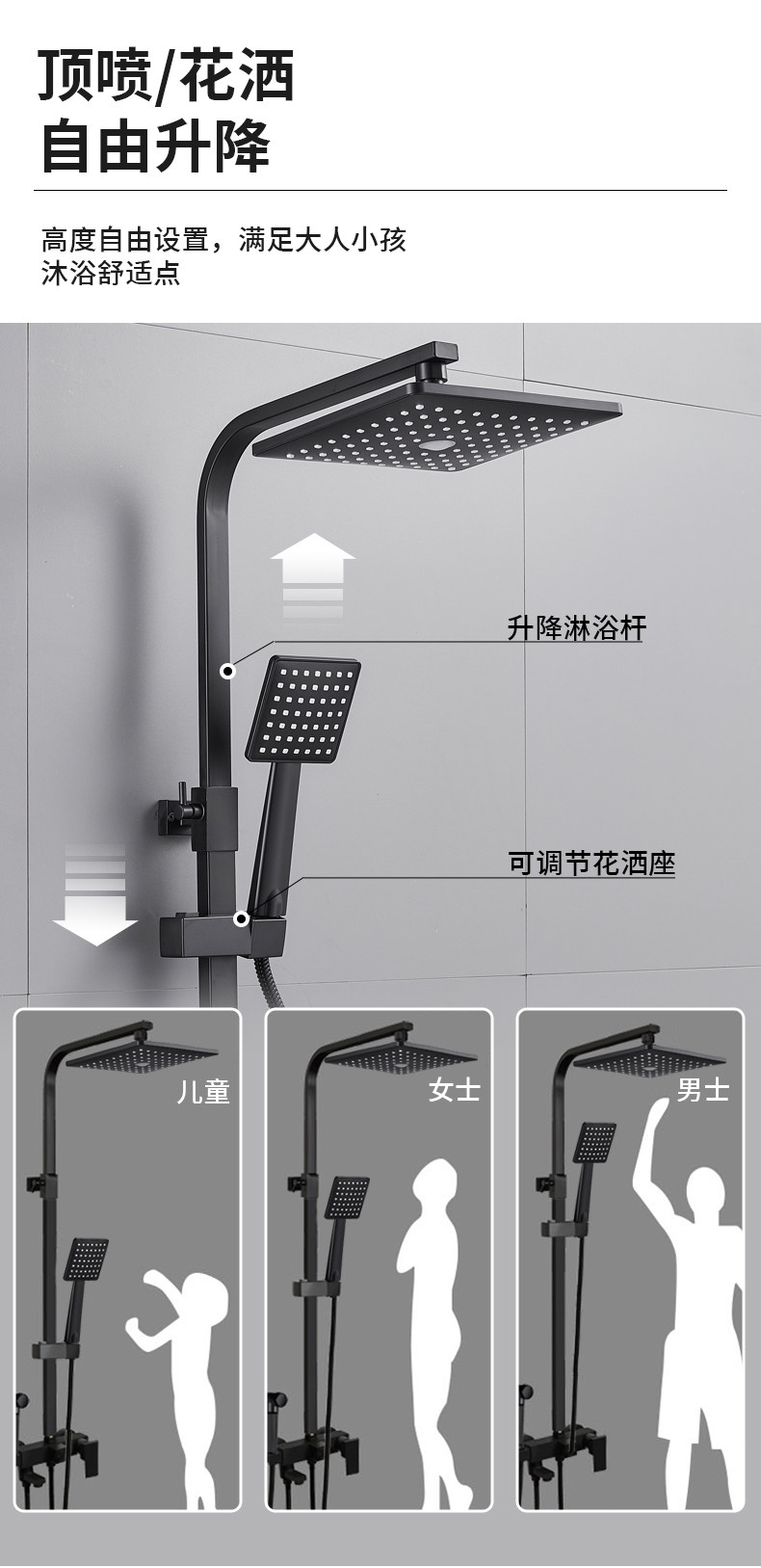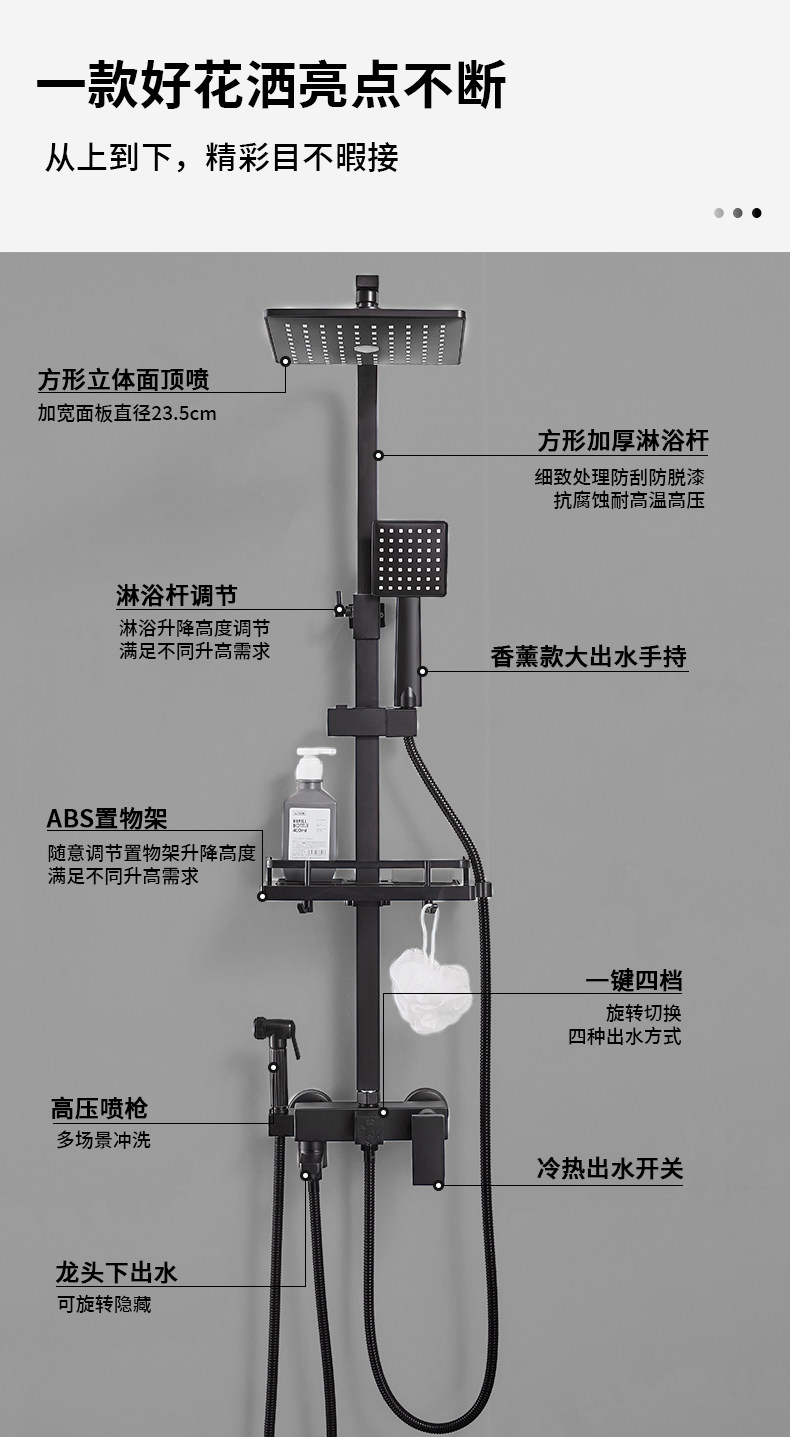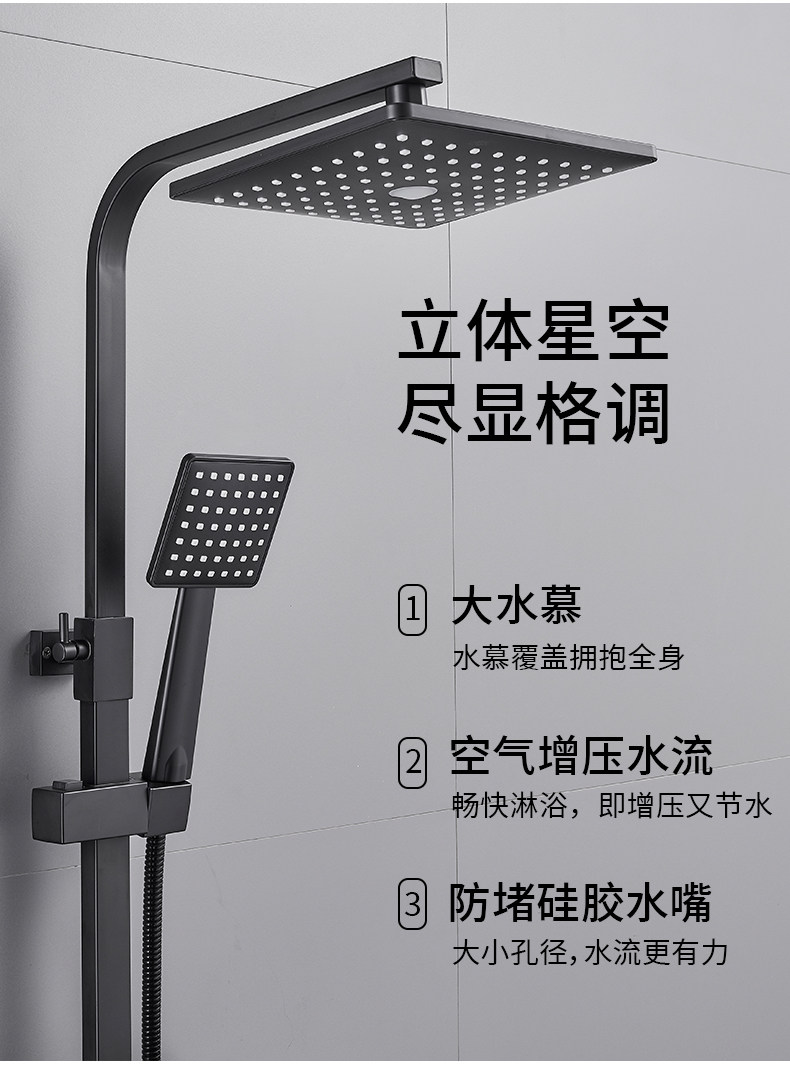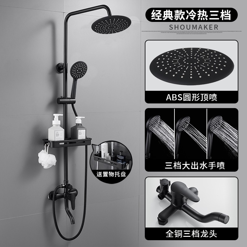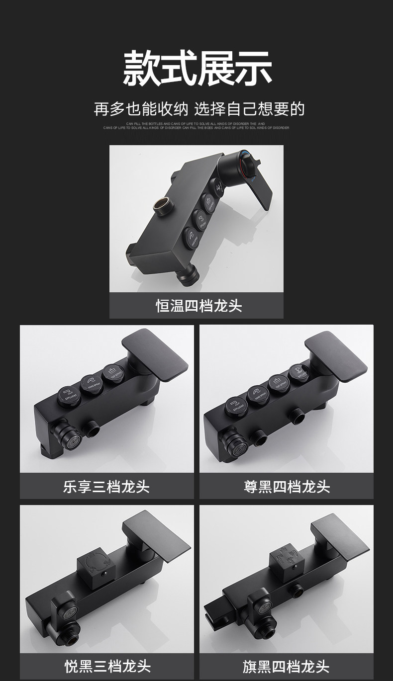 블랙 샤워 세트 가정용 욕실 모든 구리 욕실 가압 샤워 게이지 온도 조절 수도꼭지 비 스프레이 헤드