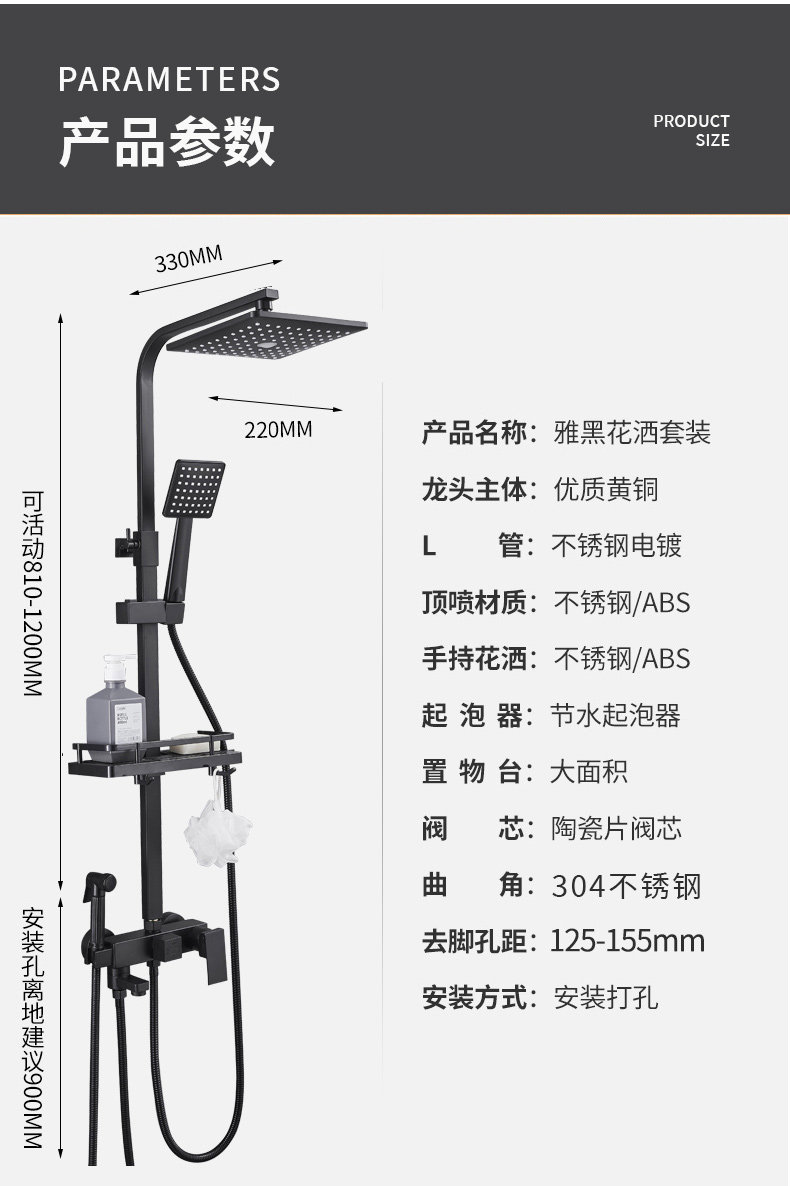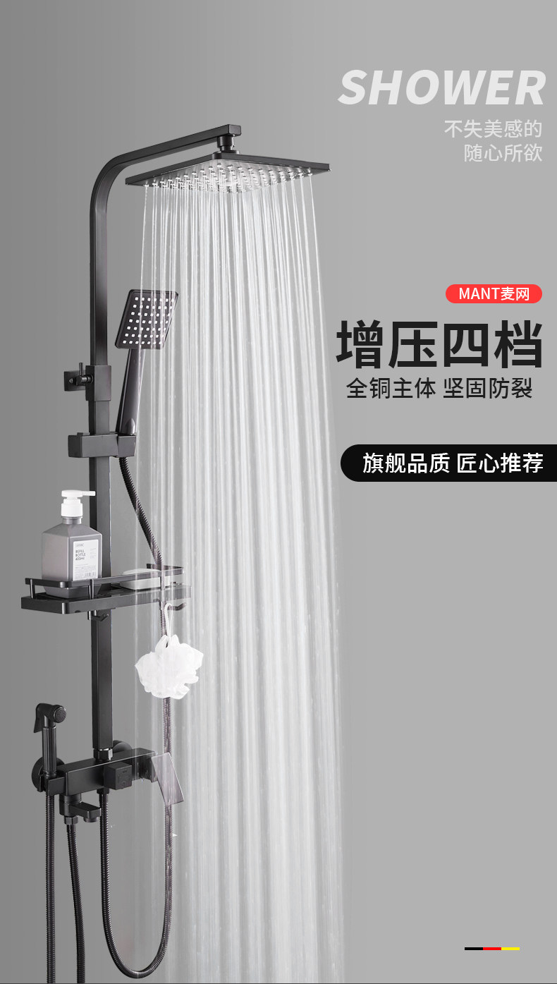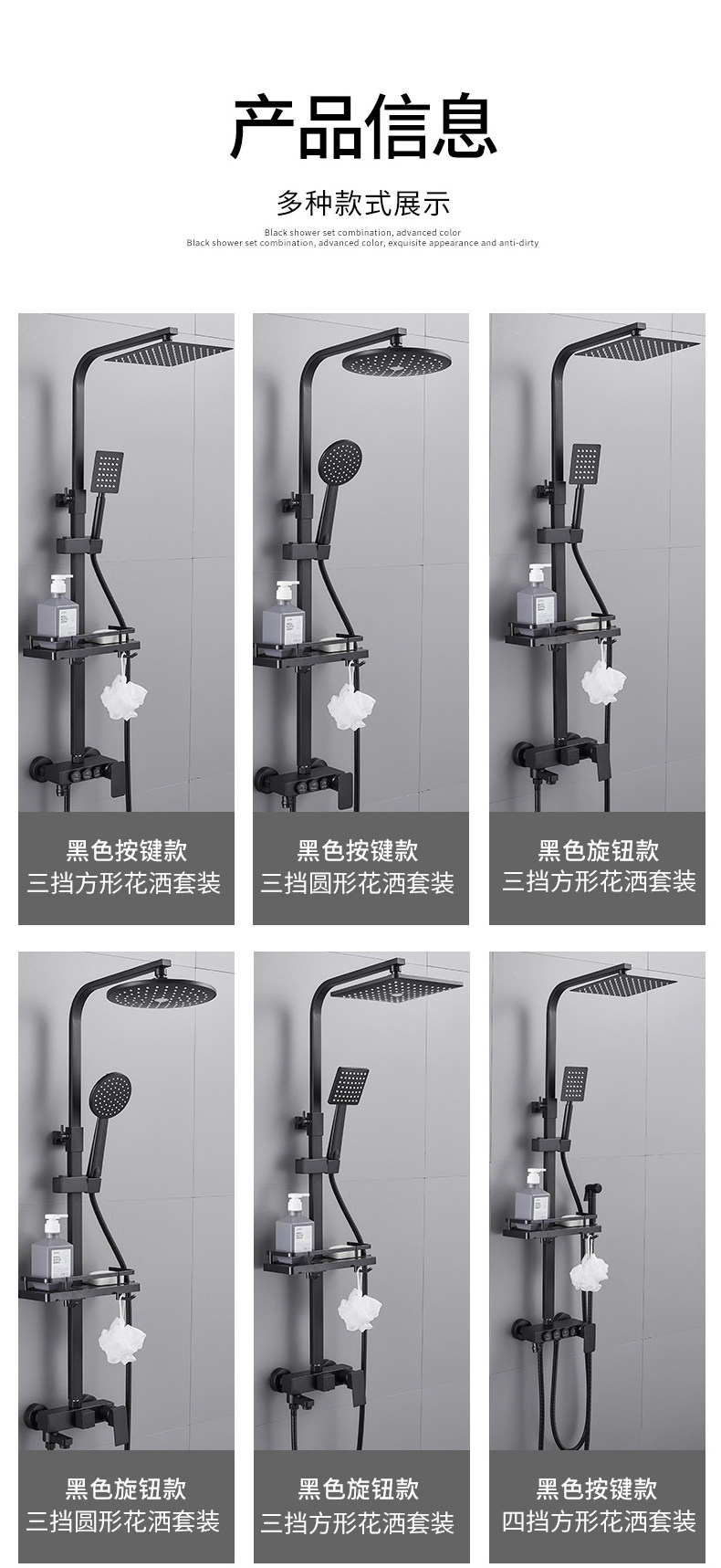 블랙 샤워 세트 가정용 욕실 모든 구리 욕실 가압 샤워 게이지 온도 조절 수도꼭지 비 스프레이 헤드스토어 가기