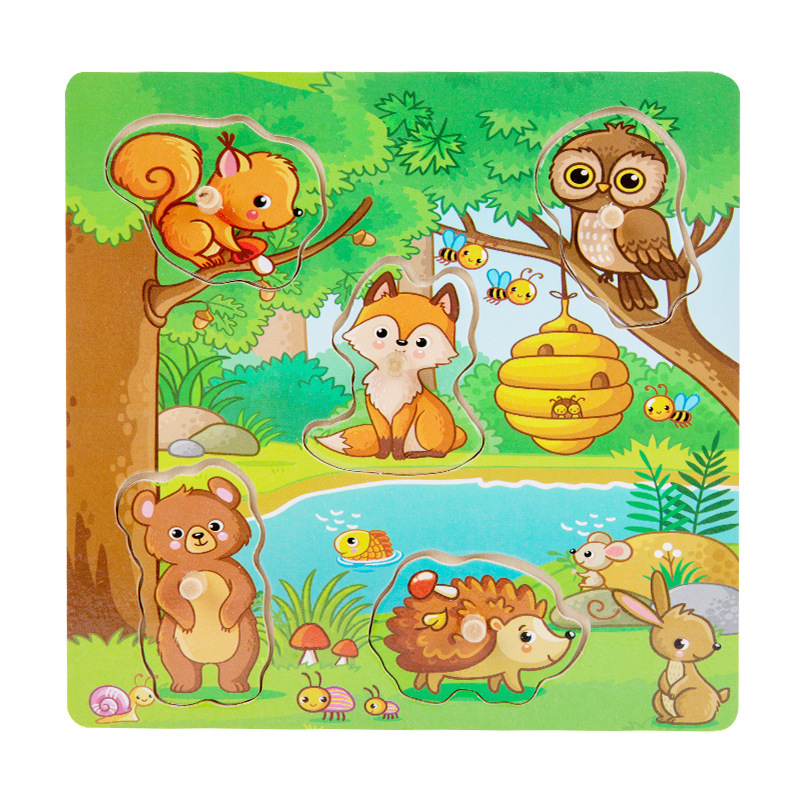 재미있는인지 어린이 교육 나무 장난감 잡기 퍼즐 4 연습 손과 눈 조정 유치원 0-3 세스토어 가기
