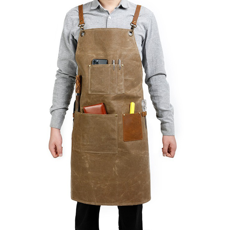 살구색 다크 브라운 오일 왁스 캔버스 도구 앞치마 전술 앞치마 기름 증거 복고풍 앞치마 목수 엔지니어 앞치마스토어 가기