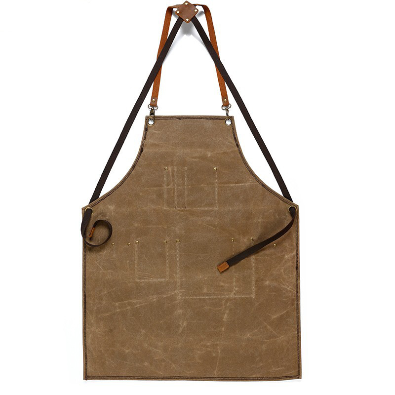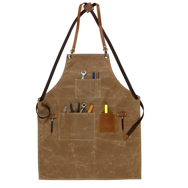 살구색 다크 브라운 오일 왁스 캔버스 도구 앞치마 전술 앞치마 기름 증거 복고풍 앞치마 목수 엔지니어 앞치마