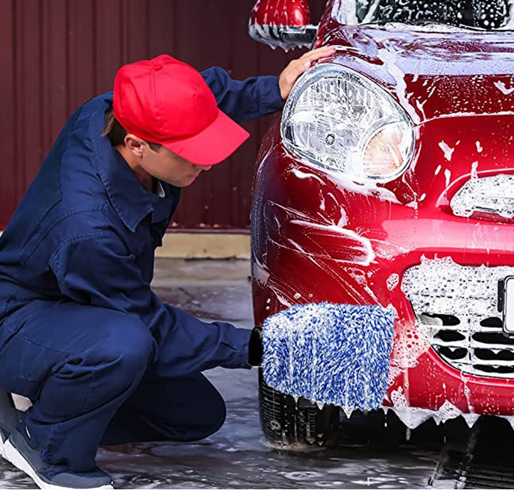 새로운 양면 두꺼운 긴 짧은 양털 산호 양털 자동차 청소 장갑 미세 섬유 청소 세차 도구 곰 발 도매