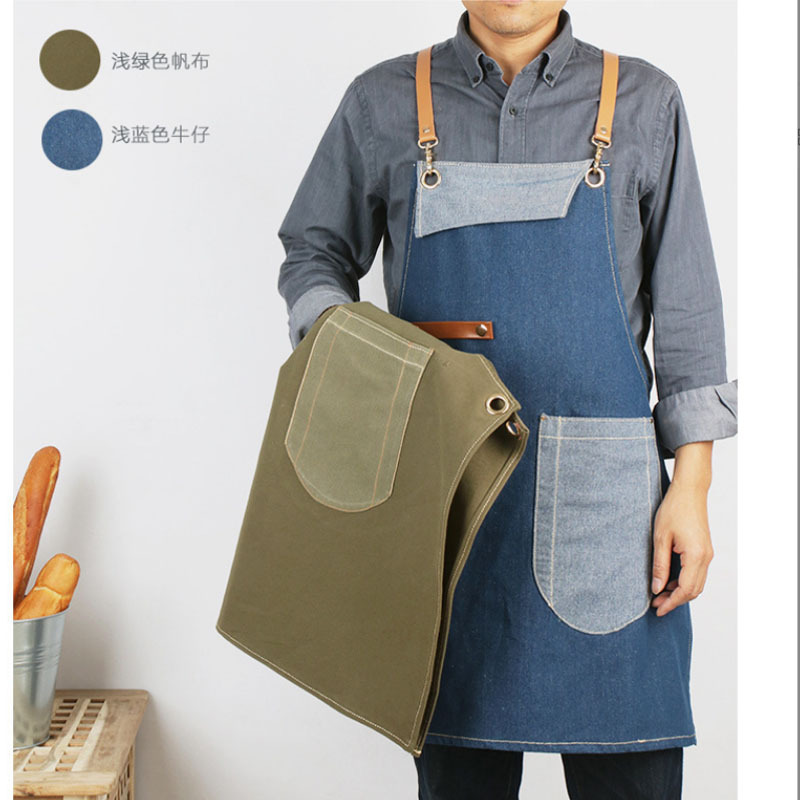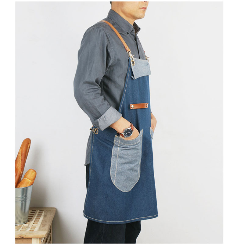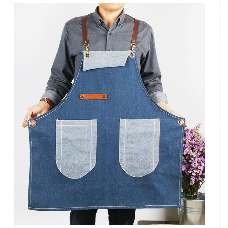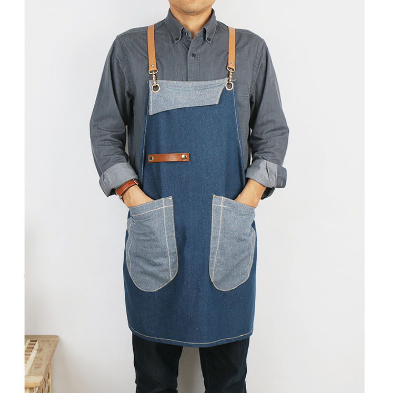 여름 얇은 데님 앞치마 능직 수출 품질 신선한 블루 스트라이프 주방 이발 로스팅 커피 원예스토어 가기