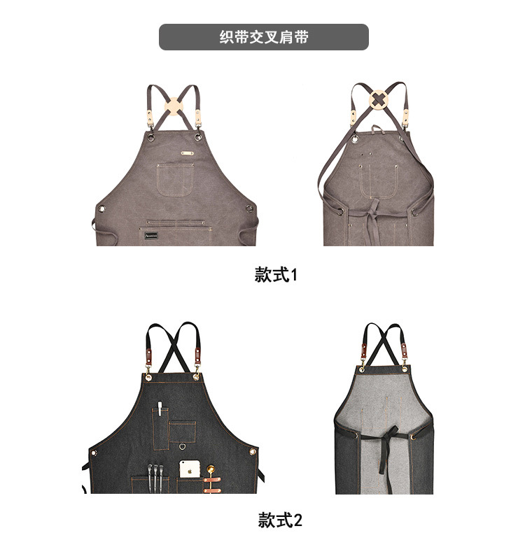 여름 얇은 데님 앞치마 능직 수출 품질 신선한 블루 스트라이프 주방 이발 로스팅 커피 원예
