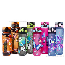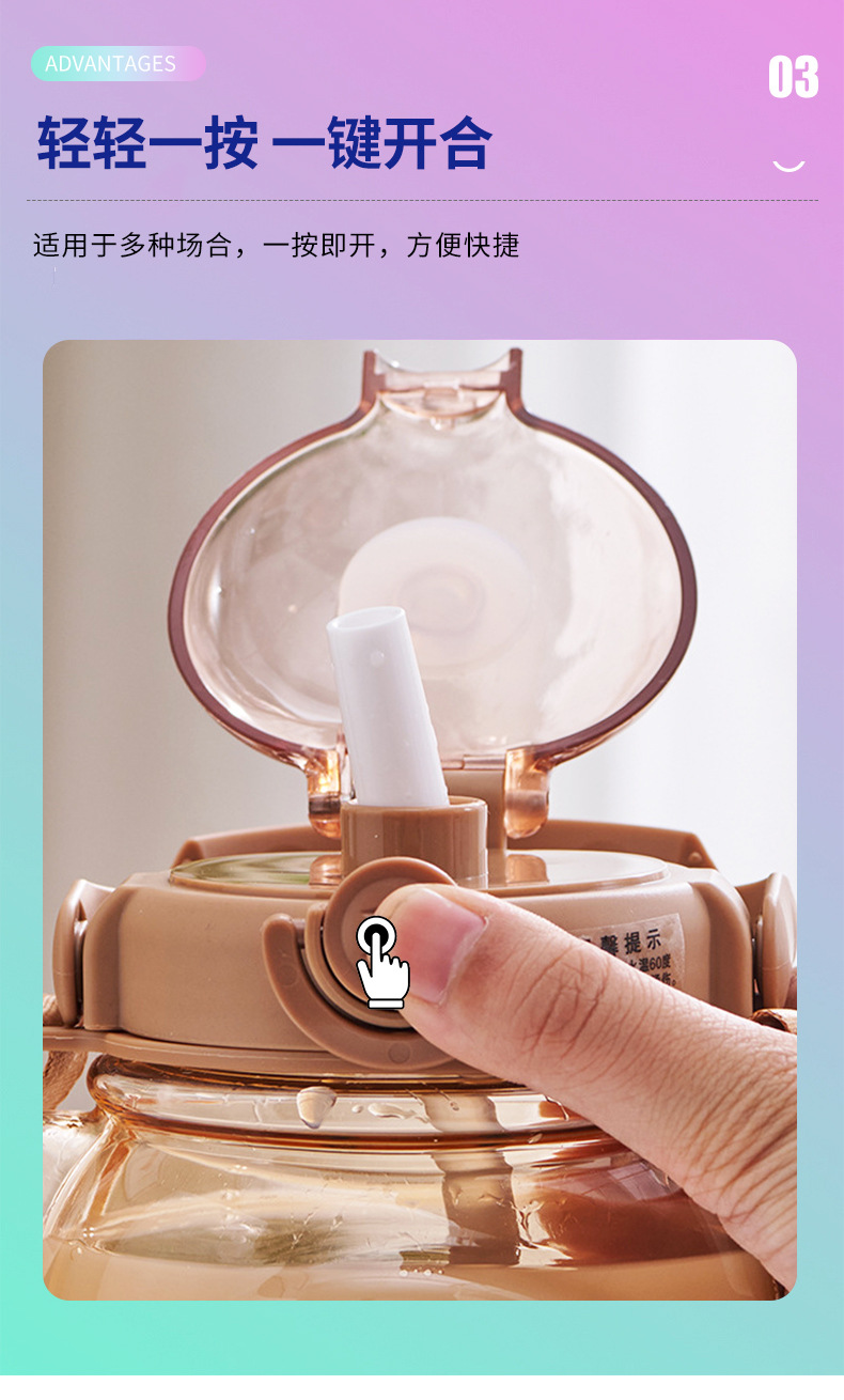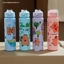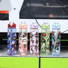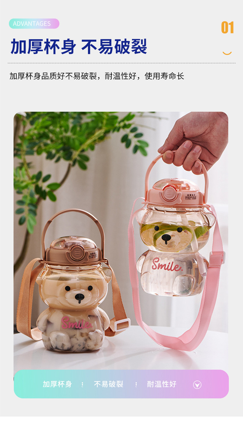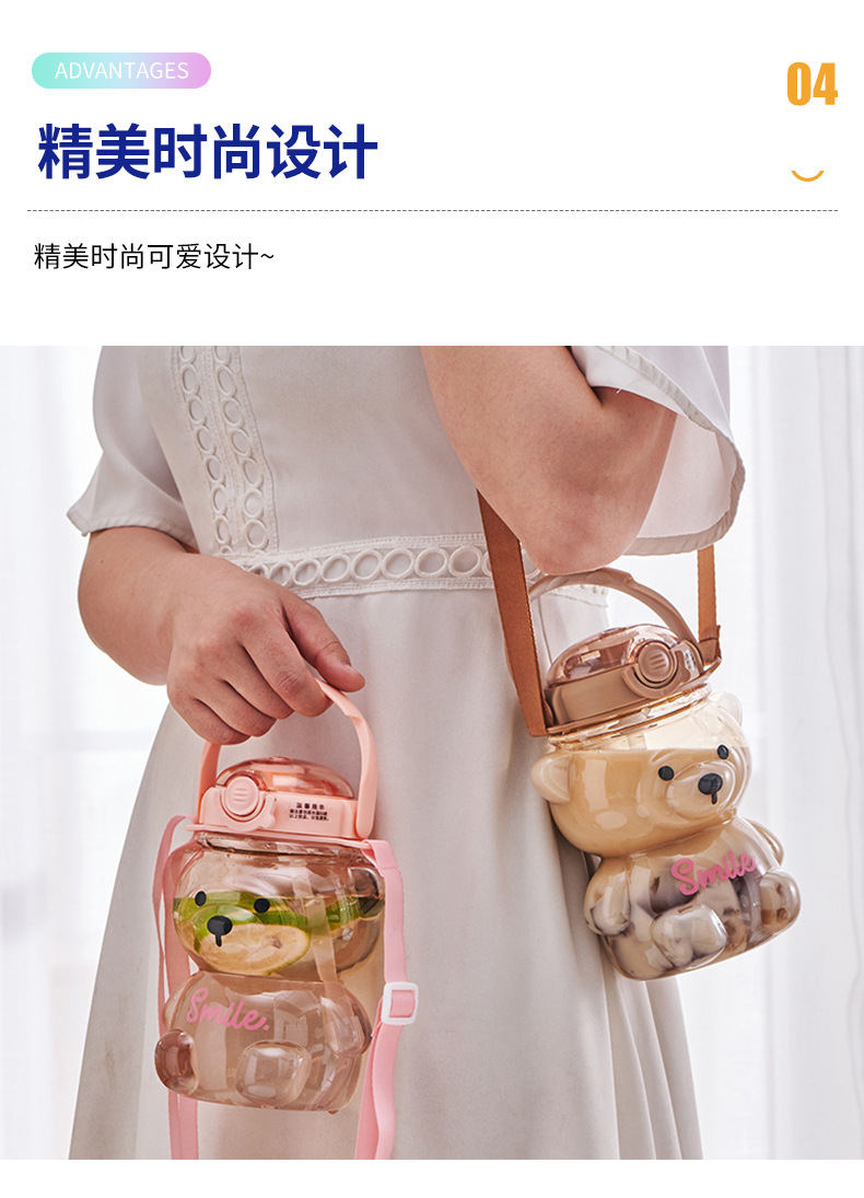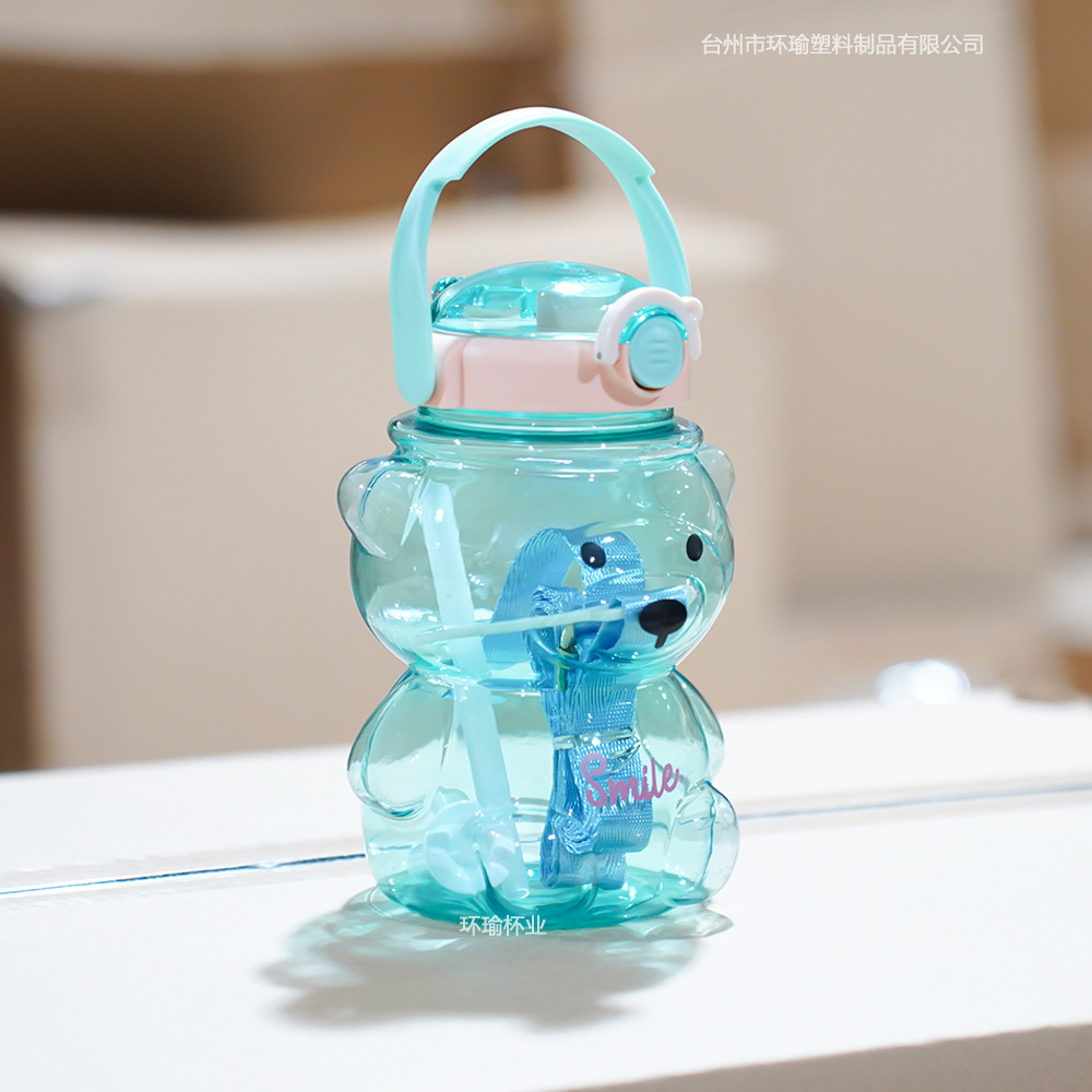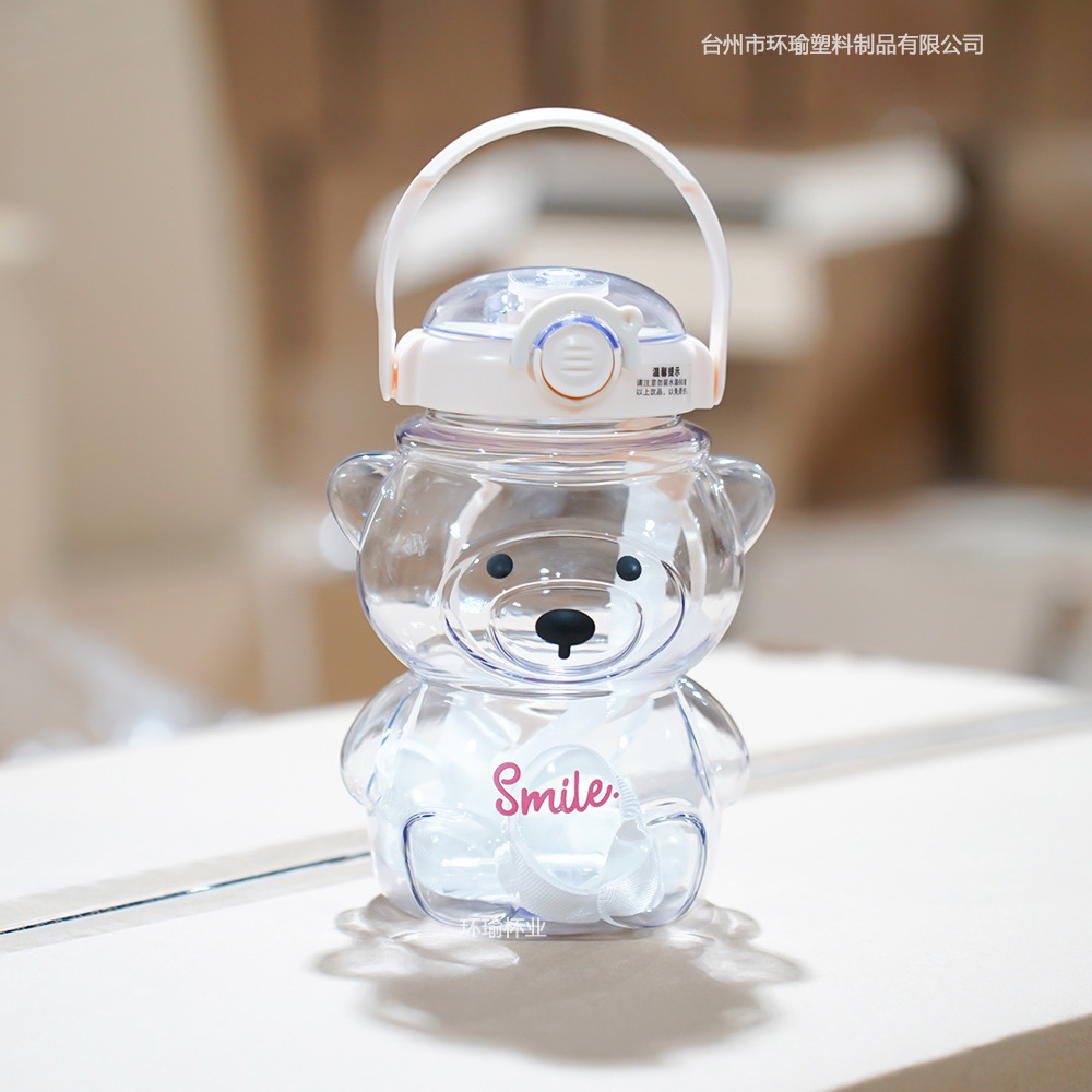 인터넷 유명인 대용량 만화 곰 플라스틱 물컵 빨대 어린이 휴대용 스트랩 물병 귀여운 컵