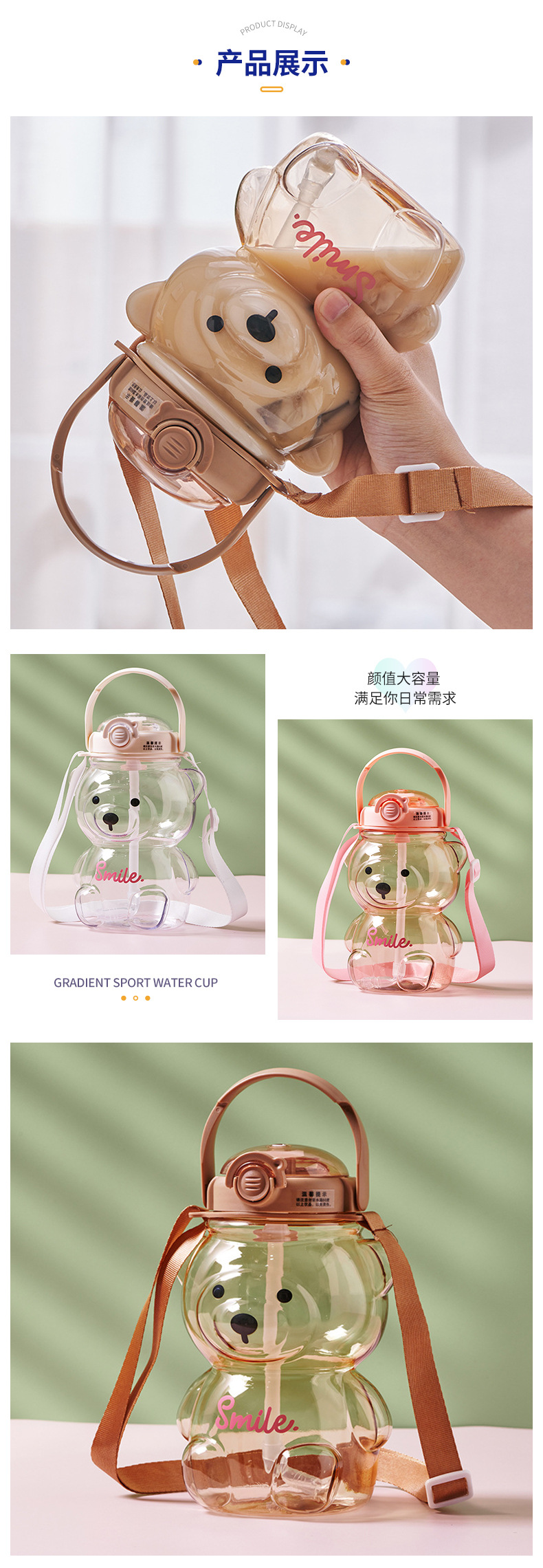 인터넷 유명인 대용량 만화 곰 플라스틱 물컵 빨대 어린이 휴대용 스트랩 물병 귀여운 컵스토어 가기
