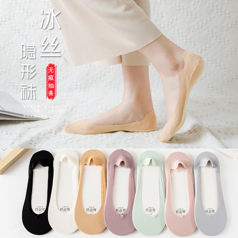 여성용 양말 아이스 실크 얕은 입은 여름과 함께 떨어지지 않습니다-보이지 않는 초박형 미끄럼 방지 스트라이프 프리 컷 보트 양말 여성