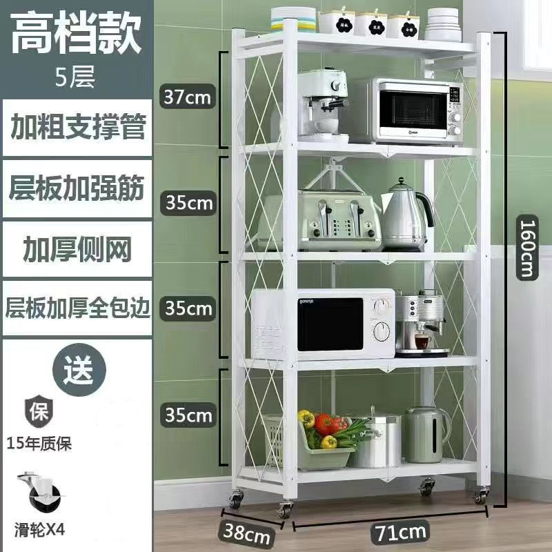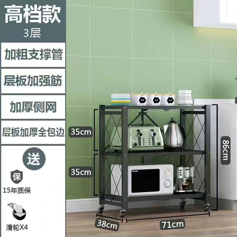 설치가 필요없는 주방 접이식 랙 다층 바닥형 마감 랙 트롤리 전자 레인지 랙 보관 랙
