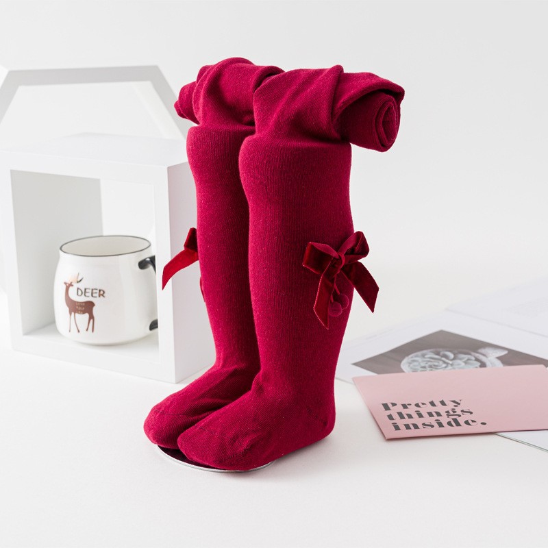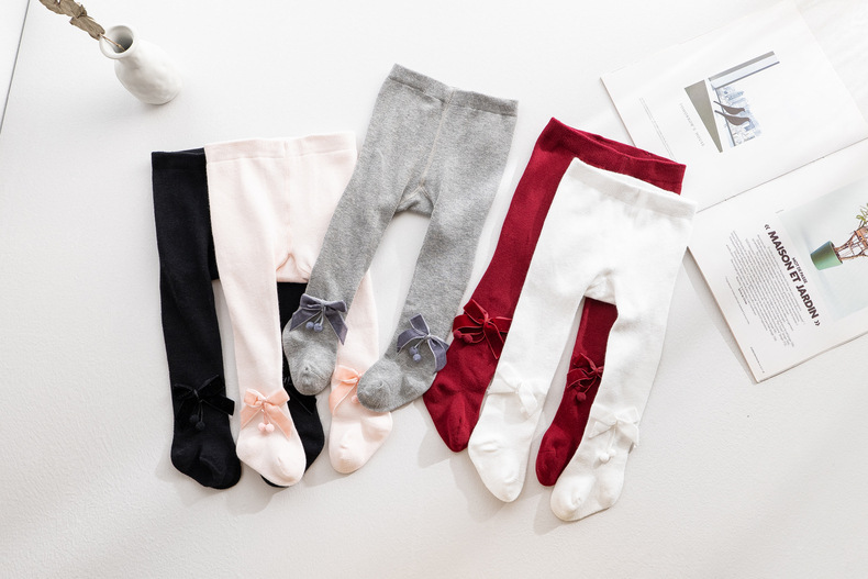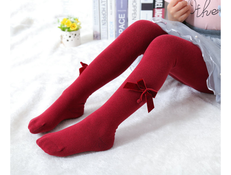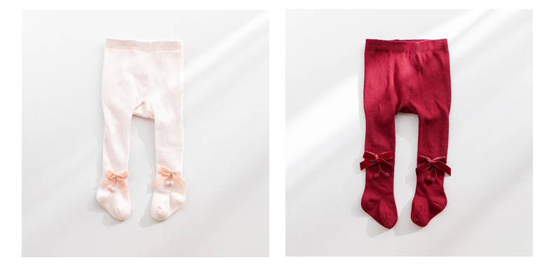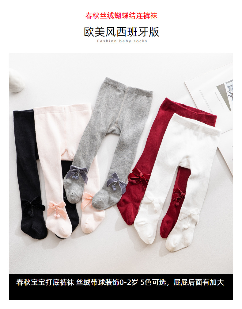 가을 신상 유럽풍 벨벳 리본 아기용 팬티스타킹, 코마사 면 소재, 엉덩이가 큰 아기들을 위한 신축성 있는 레깅스