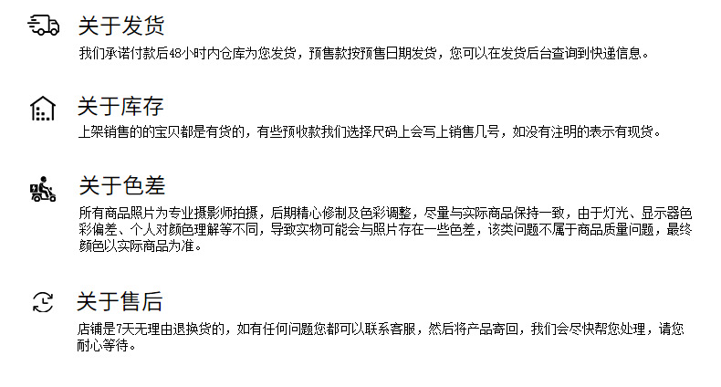 所有的付出都是为了让您获得满意的购物体验,7天无理由退换货,有任何问题请联系我们处理,不要随意差评。