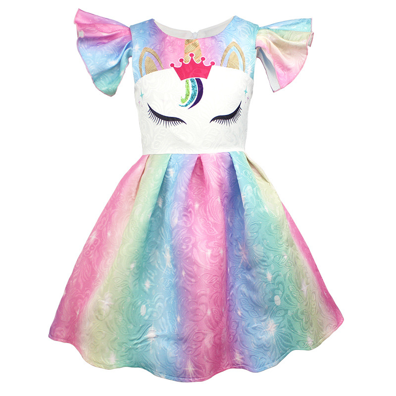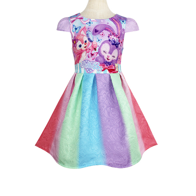 2020夏季新款儿童可爱彩虹公主裙表演数码短袖印花公主连衣裙