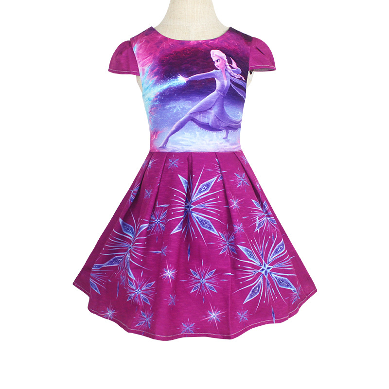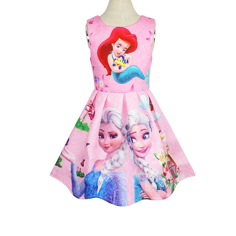2022女童夏季新款美人鱼冰雪公主短袖印花背心裙可爱夏装连衣裙