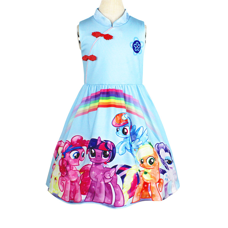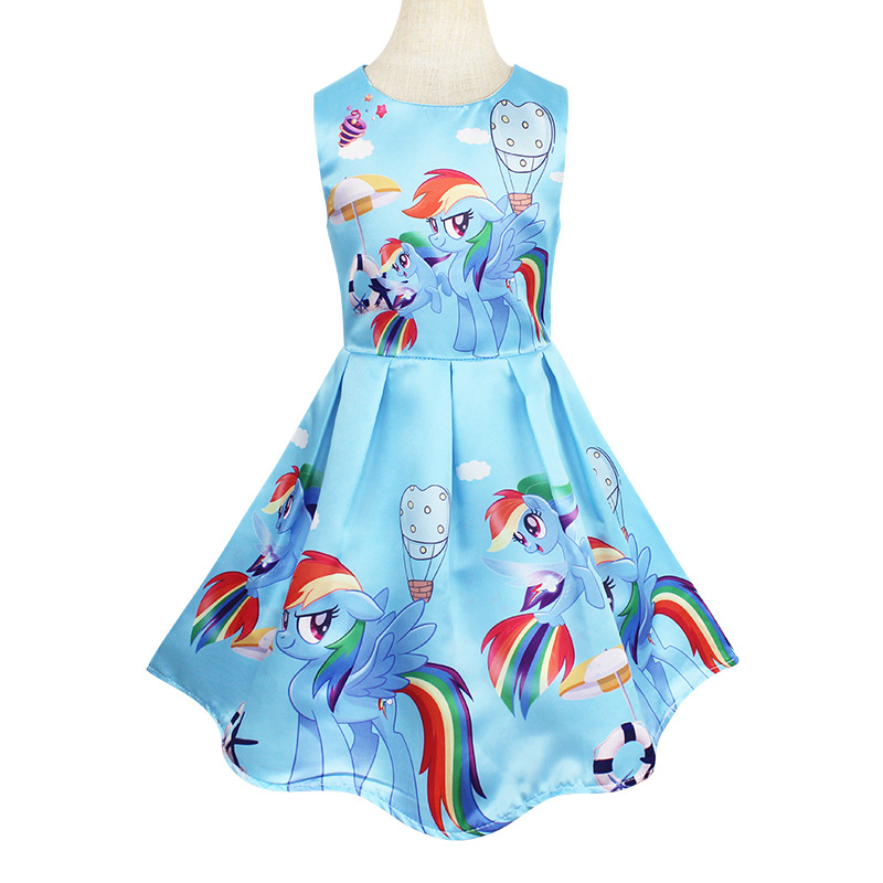 2022新款卡通小马宝莉公主蓝色夏装女宝宝印花小清新百褶裙连衣裙
