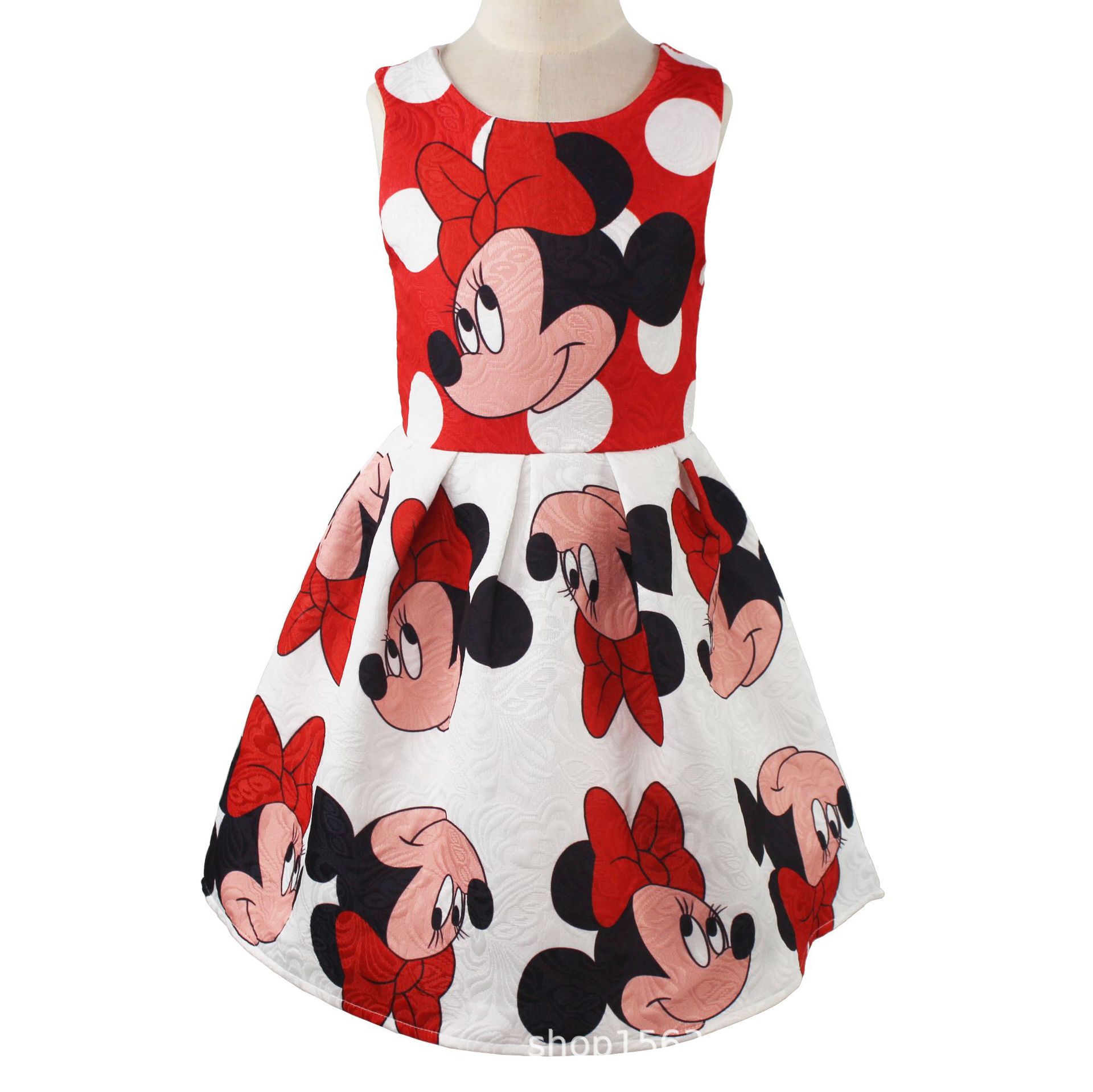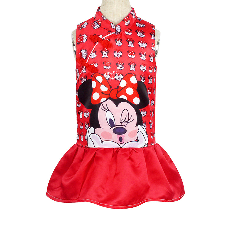 2022年夏季新品旗袍短裙女童公主连衣裙米老鼠红色卡通高腰裙