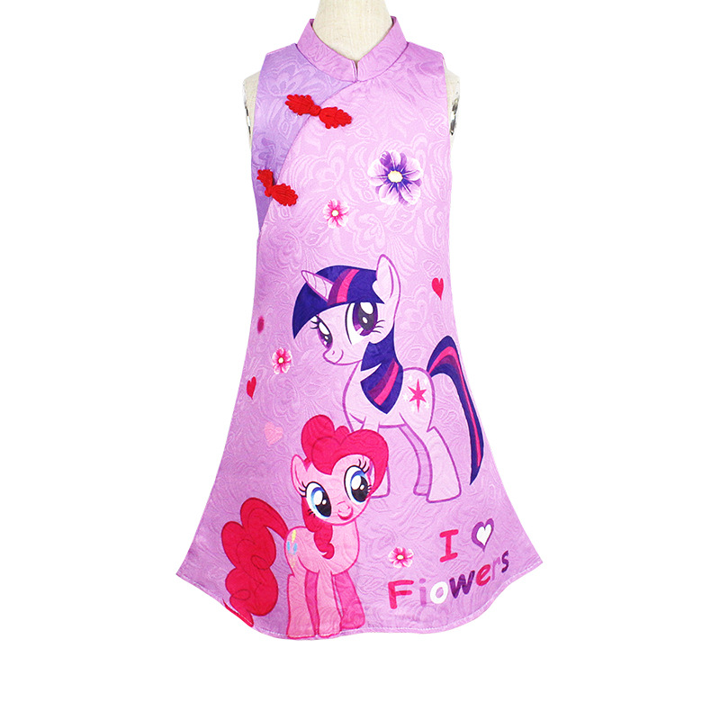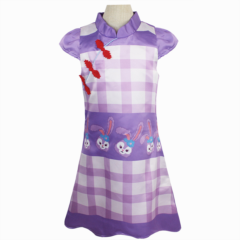 2022夏季新款女童卡通紫色星黛露可爱印花精致纽扣公主童旗袍