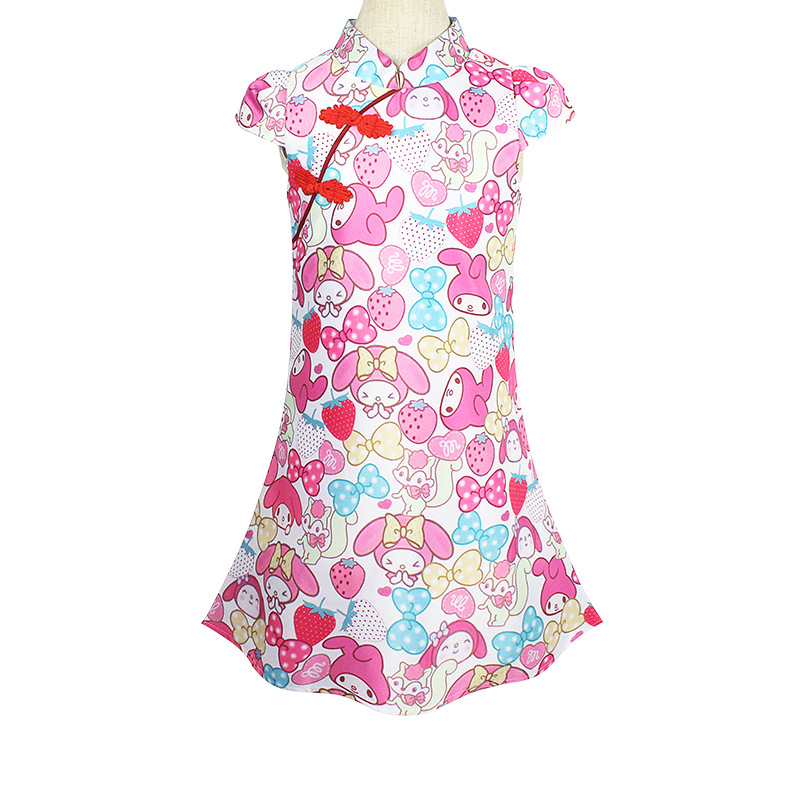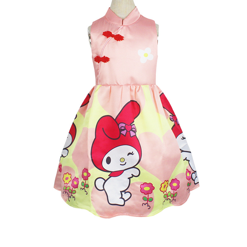 2022夏季新款女童卡通美乐蒂粉红色可爱连衣裙印花公主A字裙旗袍