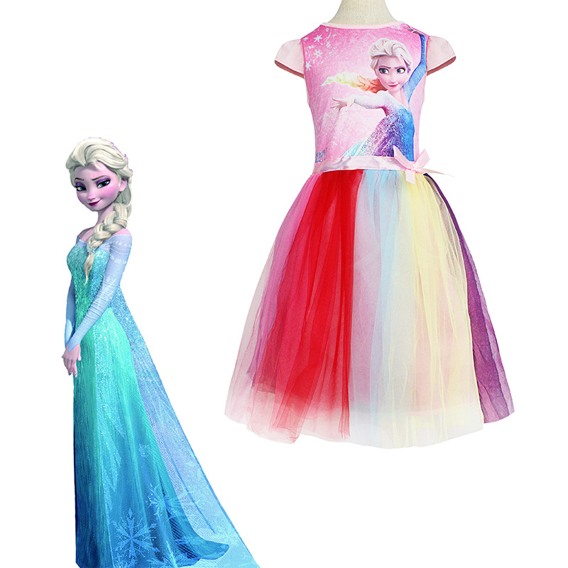 夏季新款女童卡通冰雪公主网纱连衣裙爱莎女王短袖裙子六一礼物