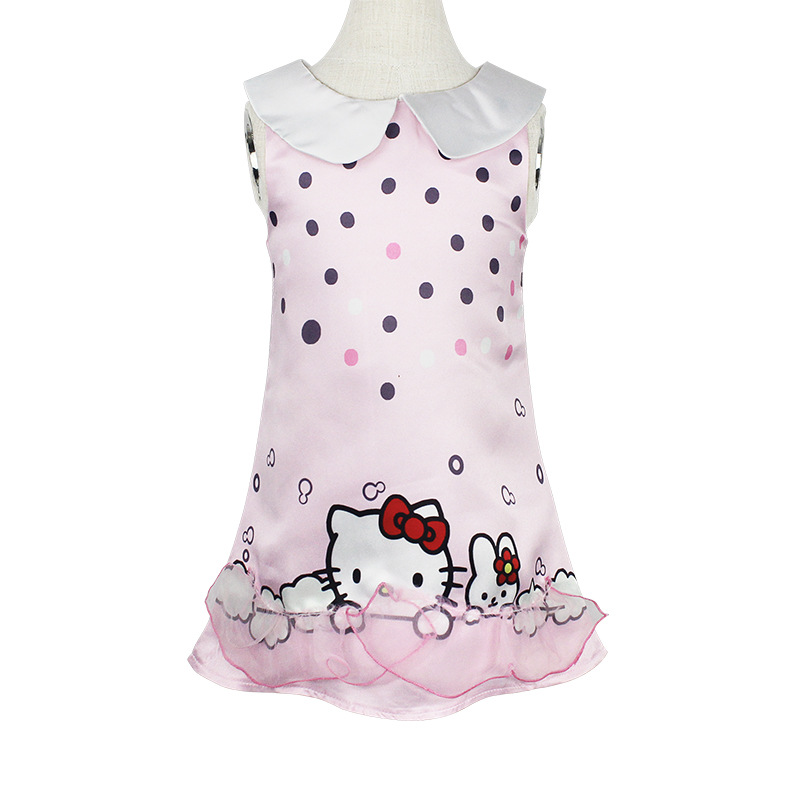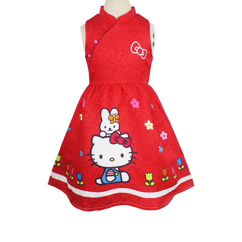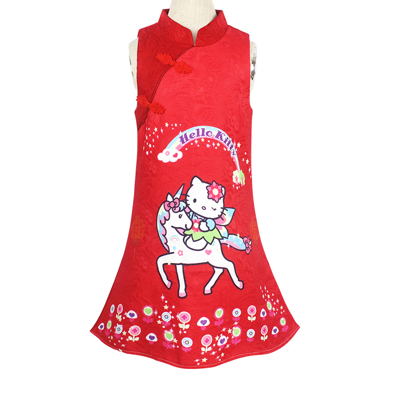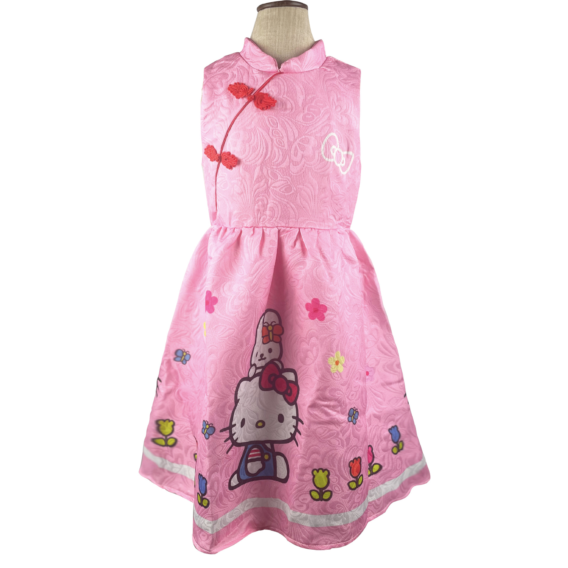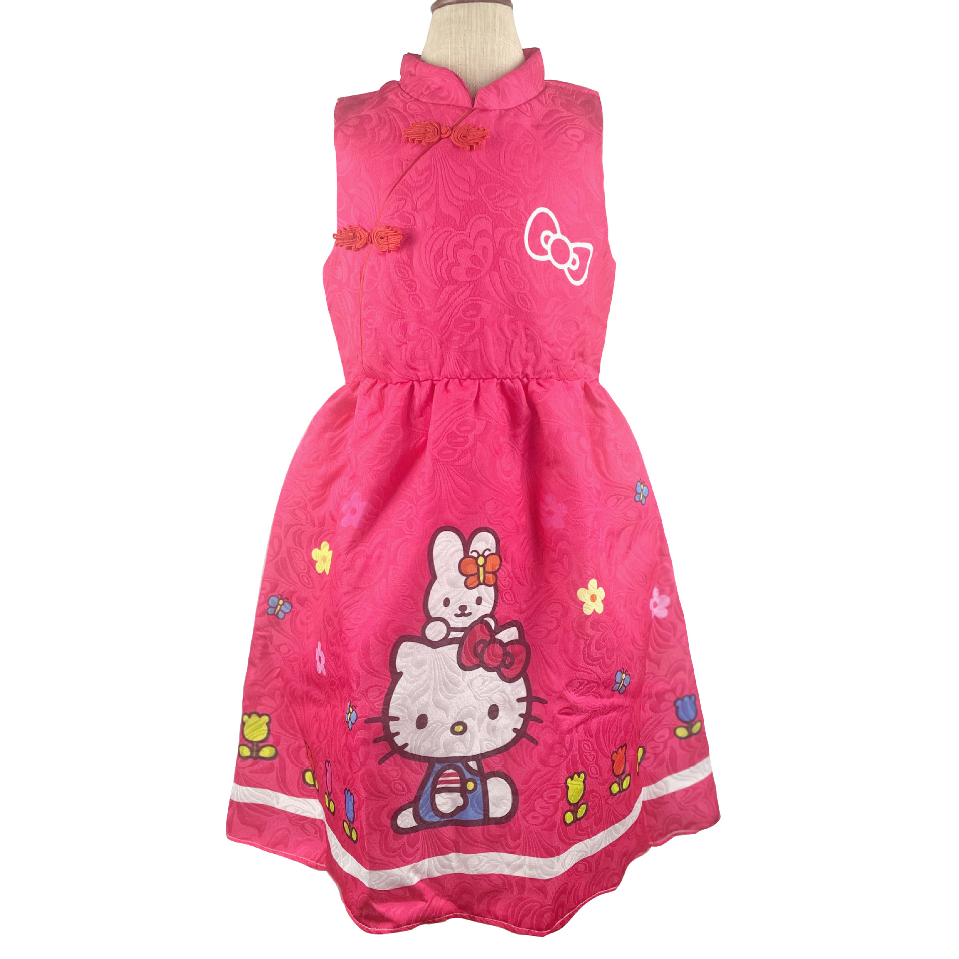 2022夏季新款女孩卡通凯蒂猫印花背心裙可爱无袖旗袍连衣裙